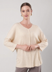 Блузка из текстильного полотна лен с вискозой,прямого силуэта. Длинный рукав со спущенной линией плеча, по низу манжет с разрезом. По борту цельновыкроенная планка с застежкой на пуговицы, по горловине отложной воротник со стойкой. По бокам разрезы.