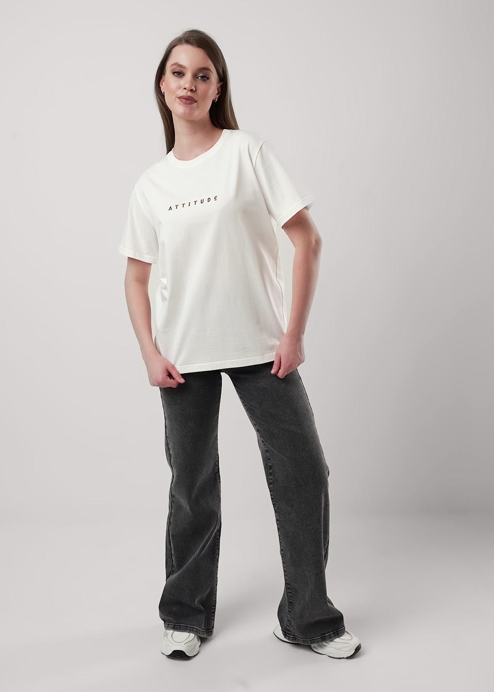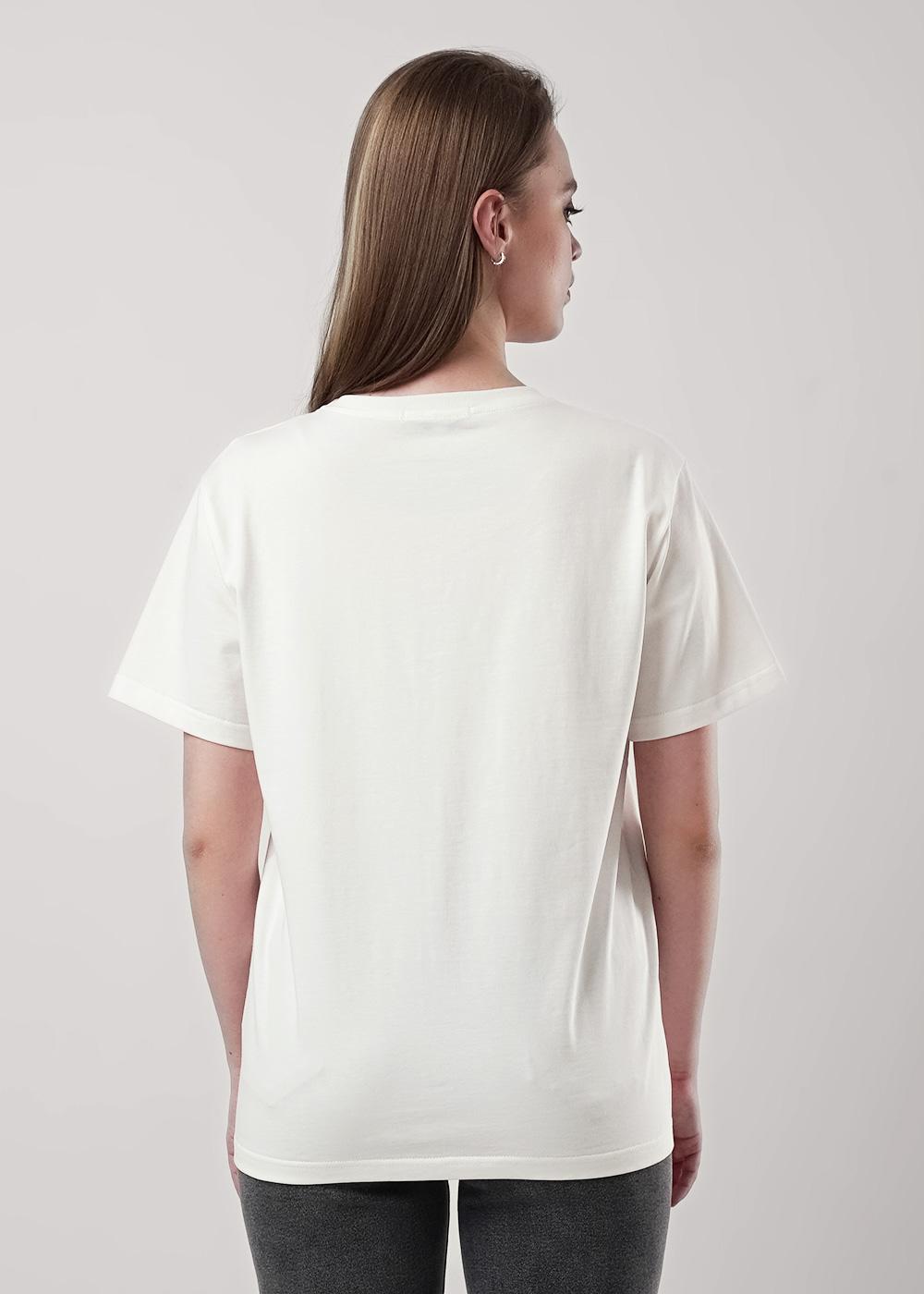 Футболка расслабленного кроя из плотного хлопкового трикотажного полотна. Короткий втачной рукав. Округлая горловина с обтачкой из рибаны. По переду принт пленка.