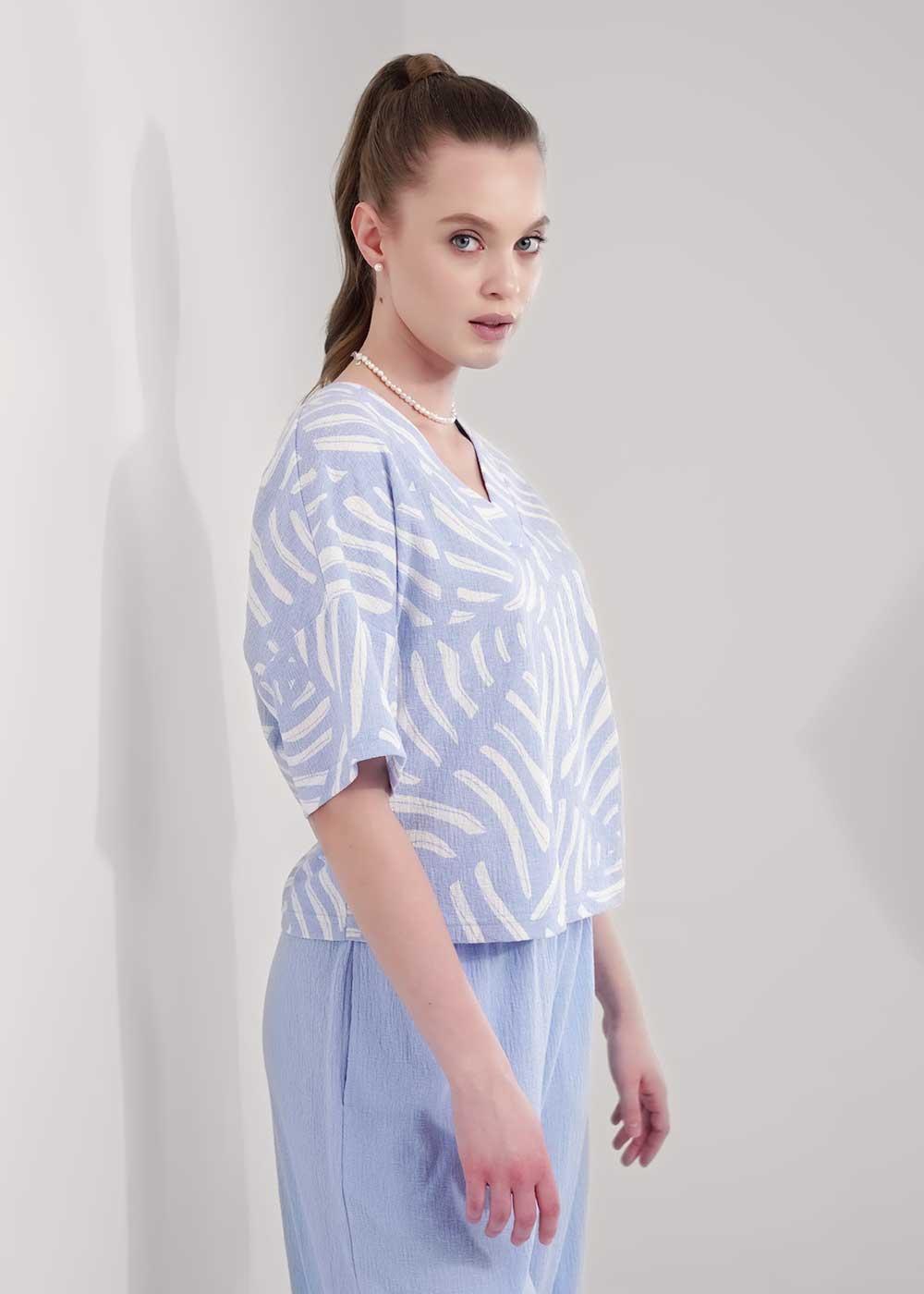 Ст.цена 1200р CLE 256912/177эфн Блузка женская 256912/177эфн молочный/голубой