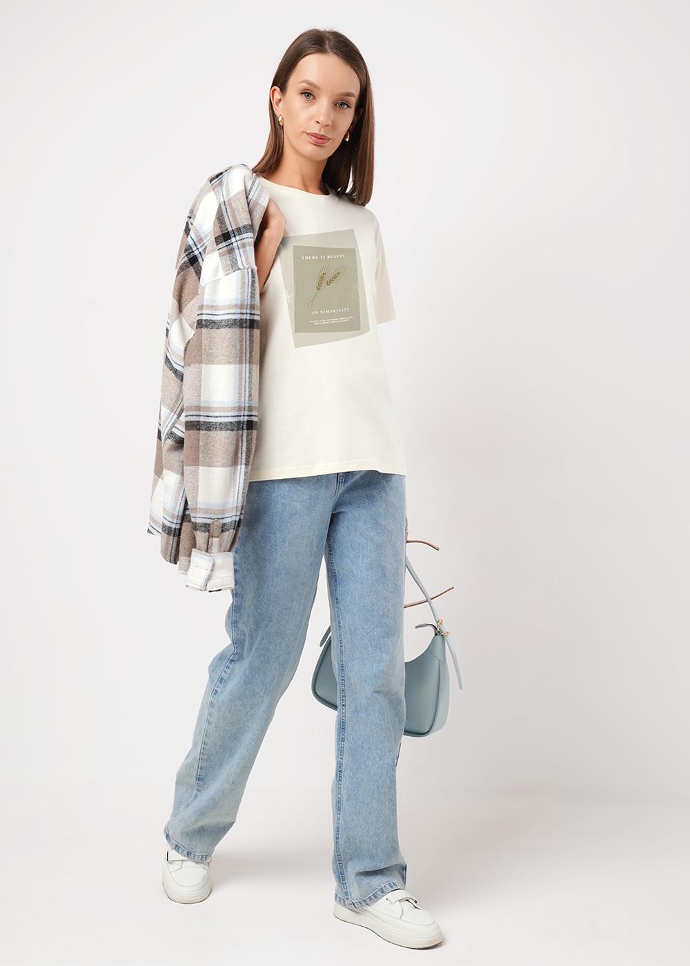Футболка из хлопкового трикотажного полотна. Округлая горловина с обтачкой. Короткий втачной рукав. Спереди принт с вышивкой.