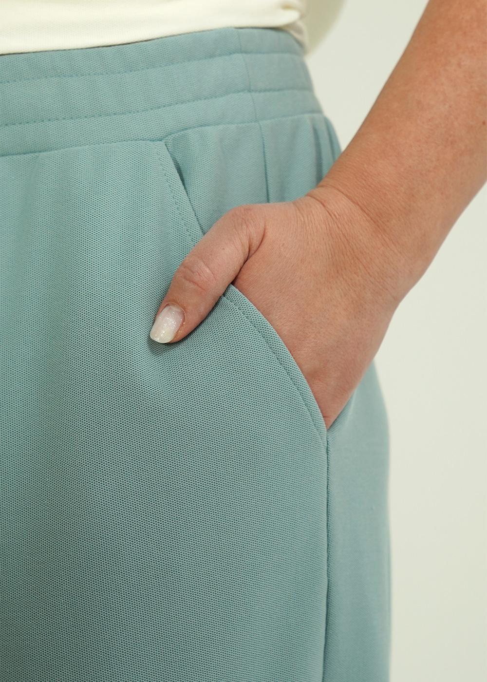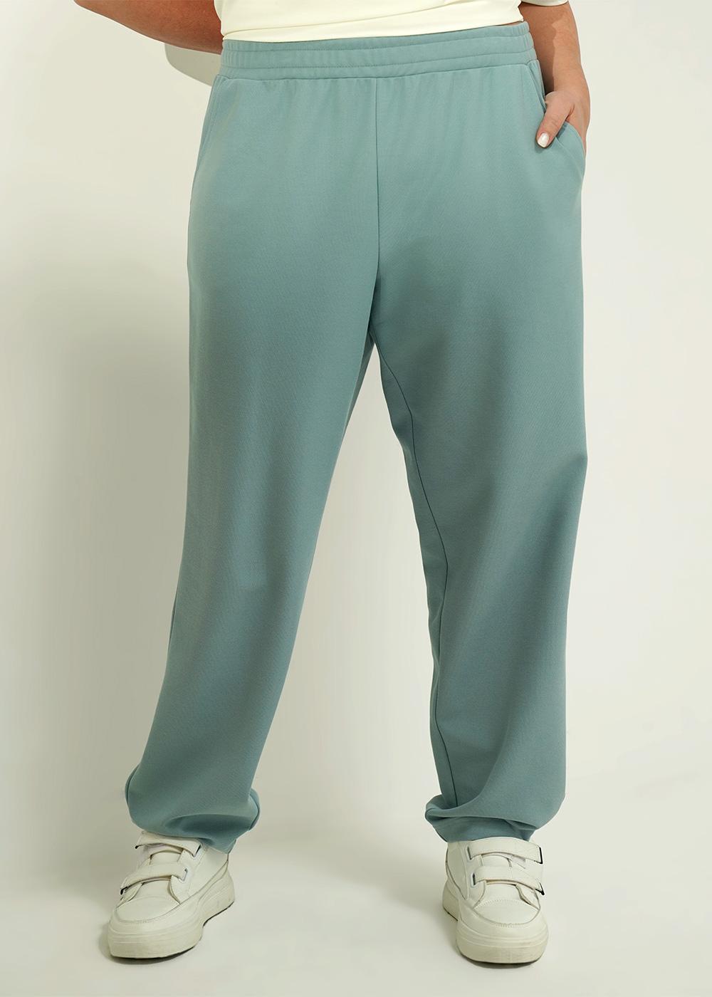 Описание: Брюки зауженные из трикотажного полотна пике. По талии притачной пояс на внутренней резинке. По низу брюк подгибка, на спинке с внутренней резинкой. Боковые карманы с отрезным бочком.