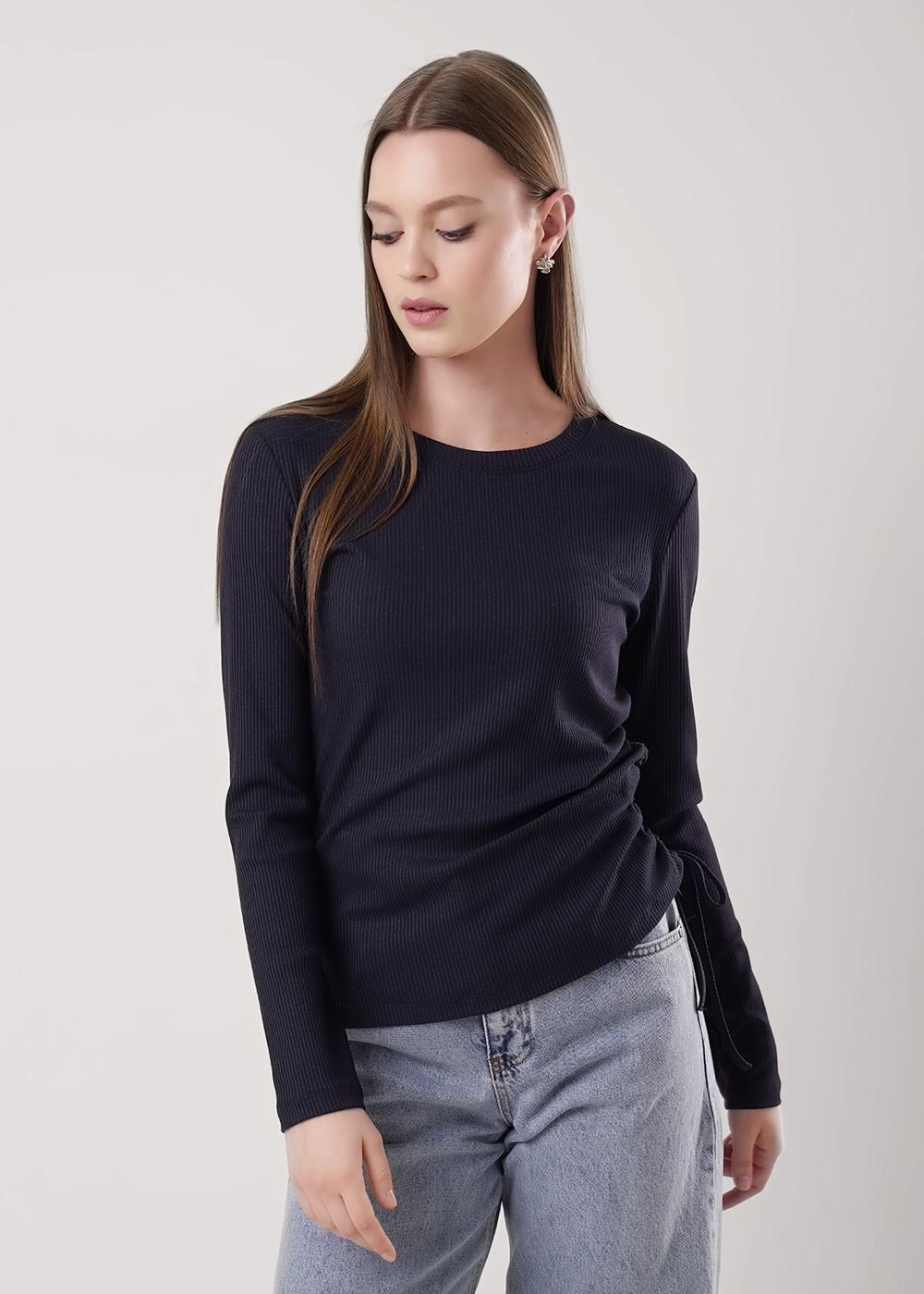 Описание: Джемпер прямого силуэта из вискозного трикотажного полотна кашкорсе. Округлая горловина с обтачкой. Длинный втачной рукав. По боковому шву кулиса со шнуром из окантовки.