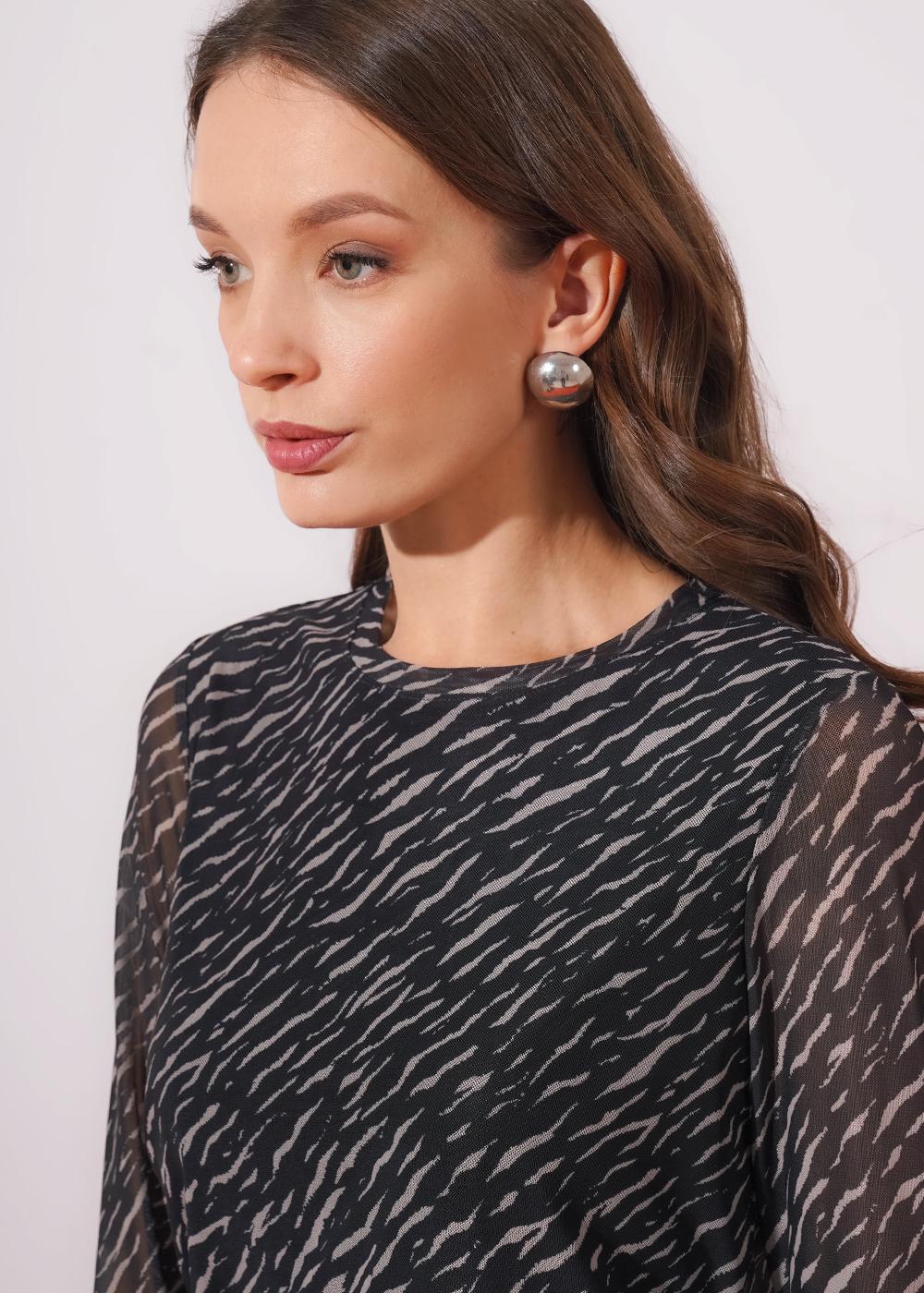 "Описание: Джемпер прямого силуэта из трикотажного полотна сетка мягкая. Спинка и полочка на подкладе. Длинный втачной рукав. Округлая горловина с обтачкой. По низу рукава и изделия открытый срез.