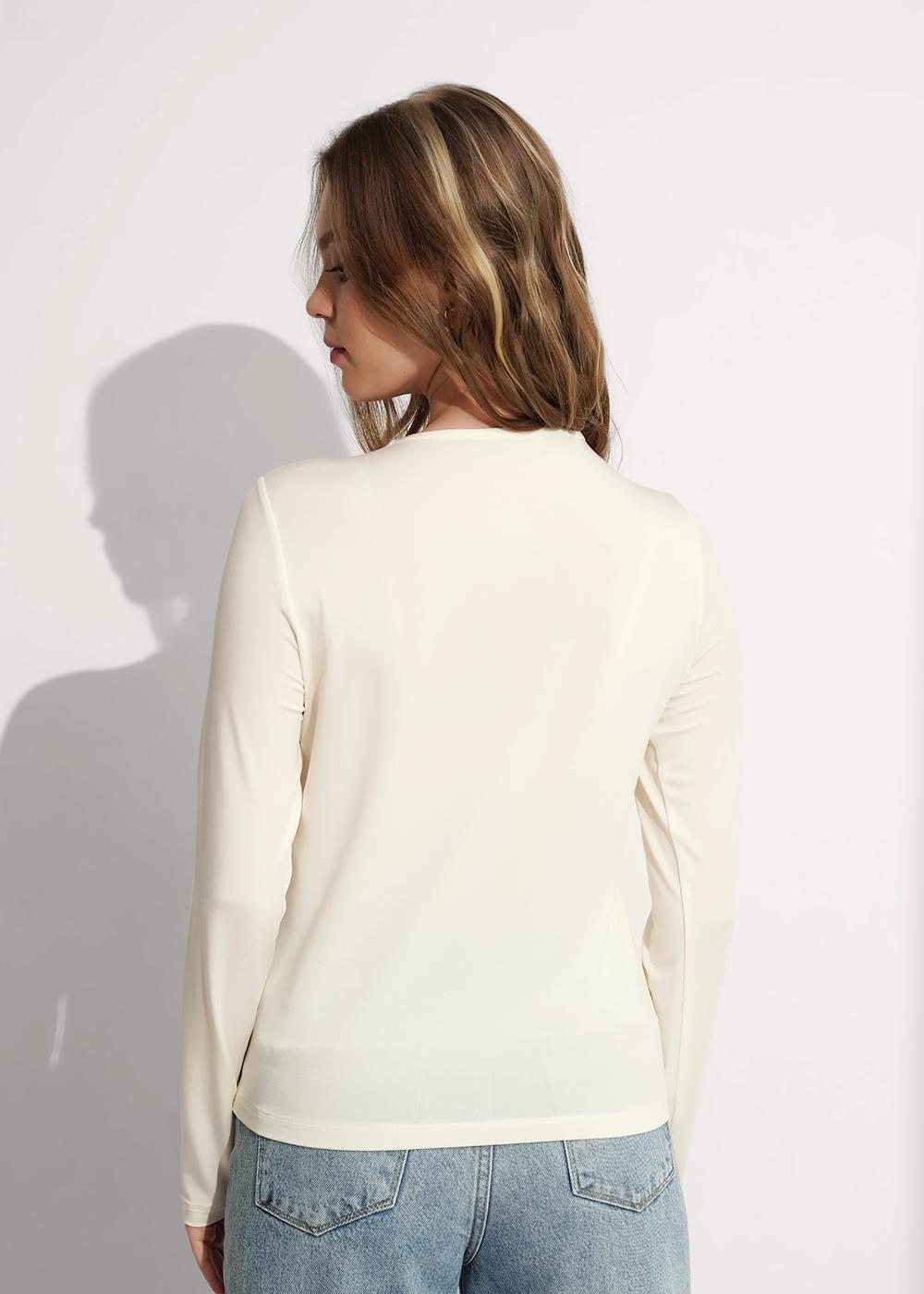Описание: Фуфайка прямого силуэта из трикотажного полотна тенсель с эластаном. Втачной длинный рукав. Двойной перед. Округлая горловина с внутренней окантовкой по спинке.