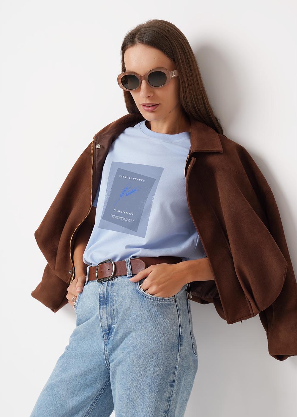 "Описание: Футболка из хлопкового трикотажного полотна. Округлая горловина с обтачкой. Короткий втачной рукав. Спереди принт с вышивкой.