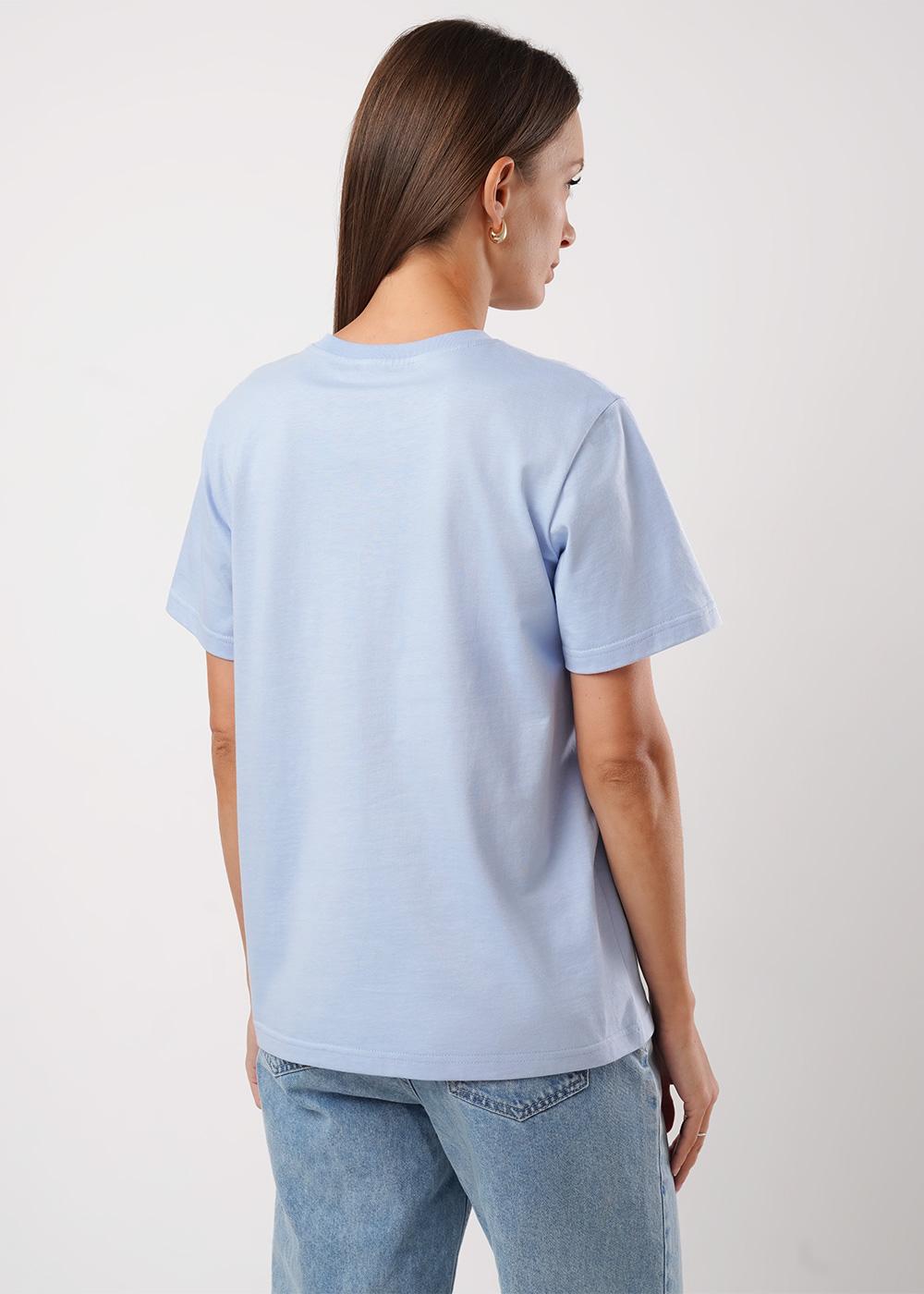 Описание: Футболка из хлопкового трикотажного полотна. Округлая горловина с обтачкой. Короткий втачной рукав. Спереди принт с вышивкой.