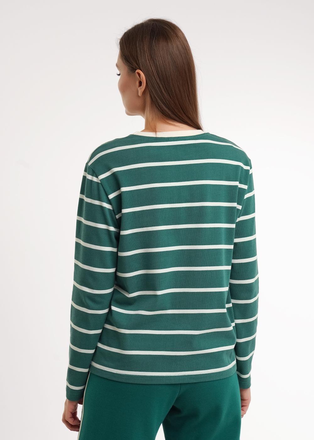 Описание: Фуфайка спортивная умеренного объема из хлопкового трикотажного полотна. Округлая горловина с обтачкой. Втачной длинный рукав. Спереди принт.