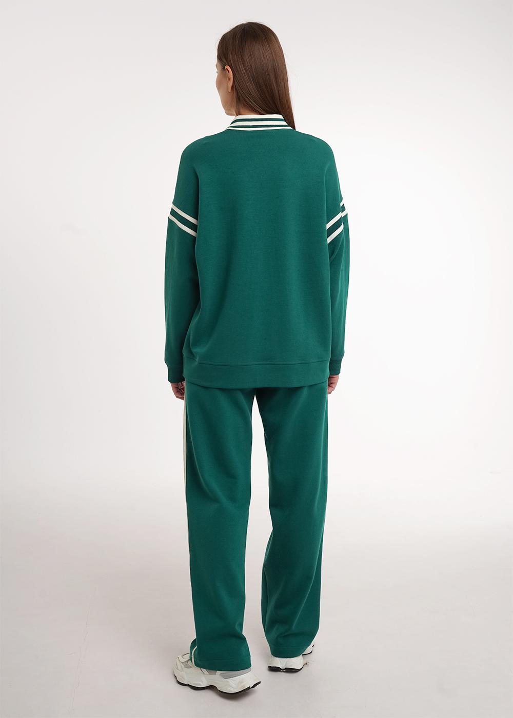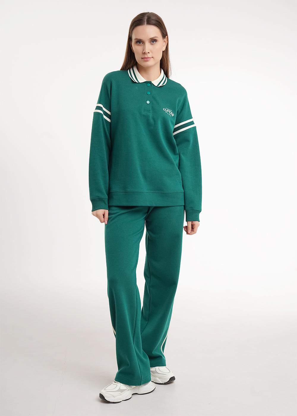 Описание: Джемпер из трикотажного полотна дабл фейс. Длинный рукав со спущенной линией плеча. По горловине вязаный воротник с планкой на кнопки. По окату рукава вязаная отделка. По низу рукава манжет из кашкорсе,по низу изделия из основного полотна. Спереди принт.