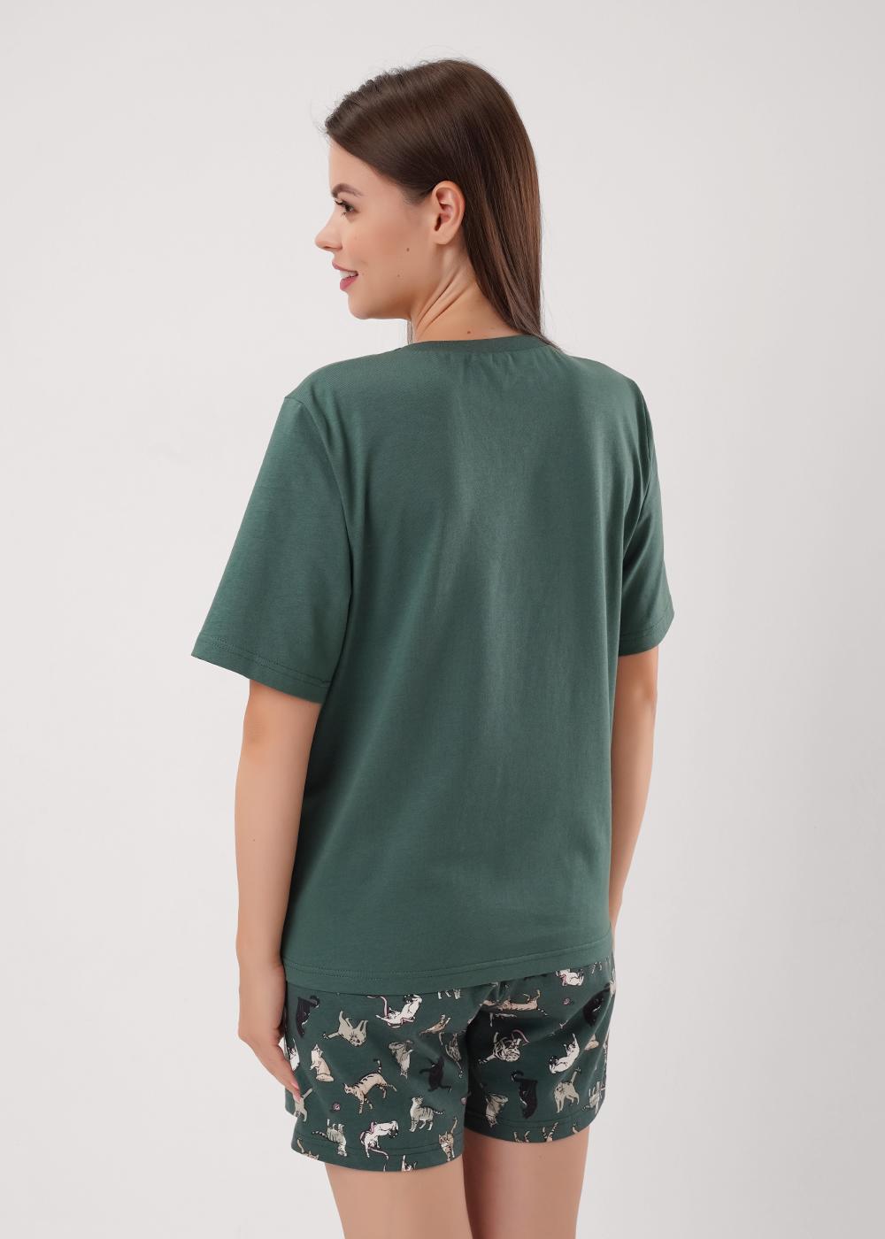 Описание: Набор одежды из хлопкового трикотажного полотна. Футболка прямого кроя. Короткий втачной рукав. Округлая горловина с обтачкой. Спереди и по рукаву принт. Шорты с поясом на внутренней резинке. Боковые карманы с отрезным бочком и кантом.