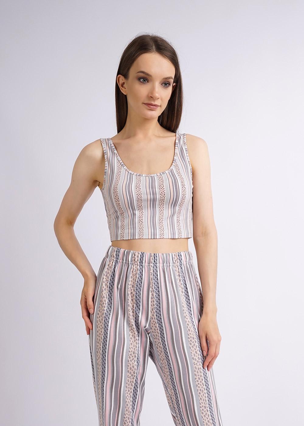 Описание: Топ из модала на широких бретелях. Горловина и пройма обработаны узкой окантовкой.