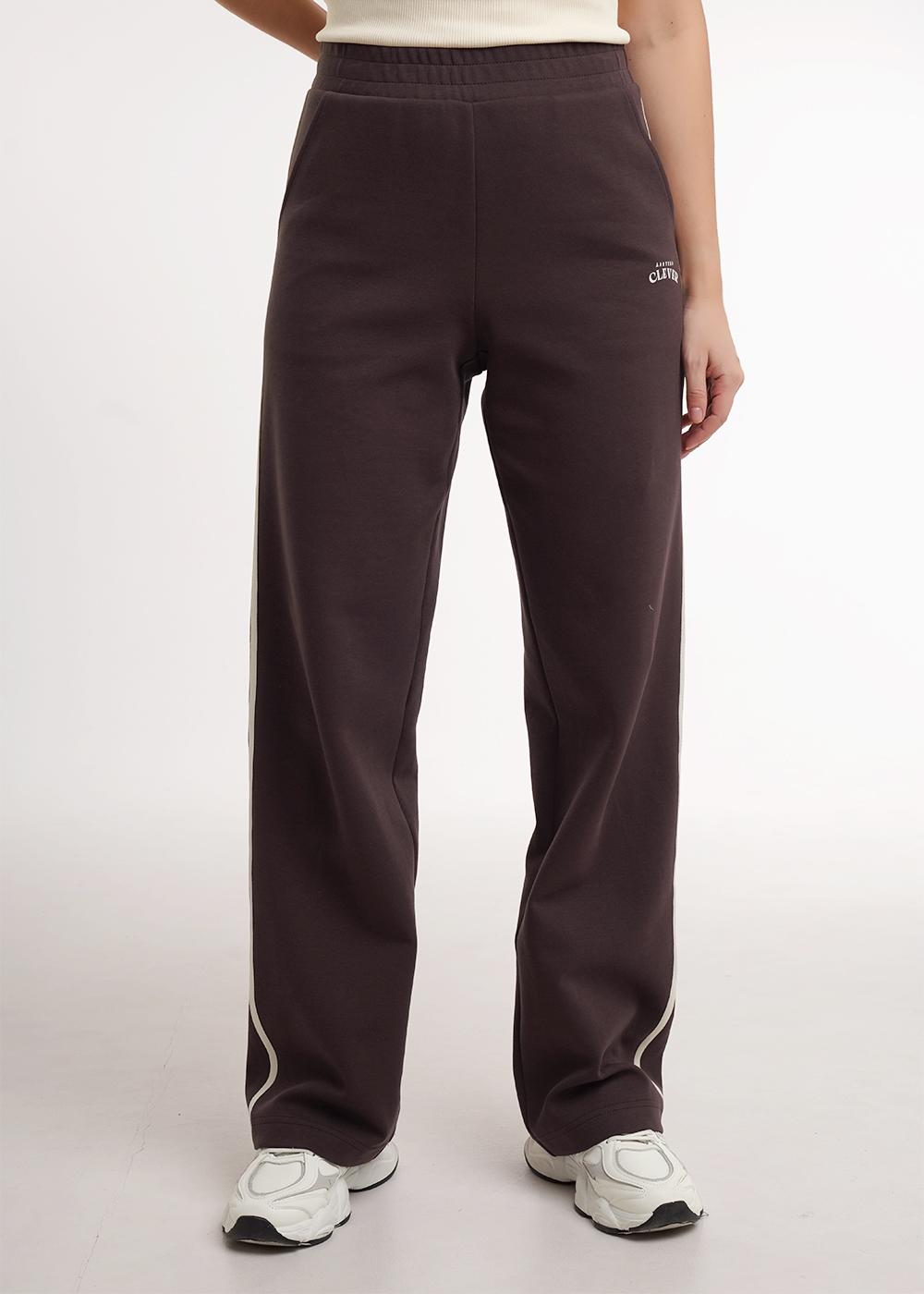 Описание: Брюки широкие спортивные из трикотажного полотна дабл фейс. По талии притачной пояс на внутренней резинке. Боковые карманы с отрезным бочком. По боковым швам лампас-тесьма. Спереди принт.