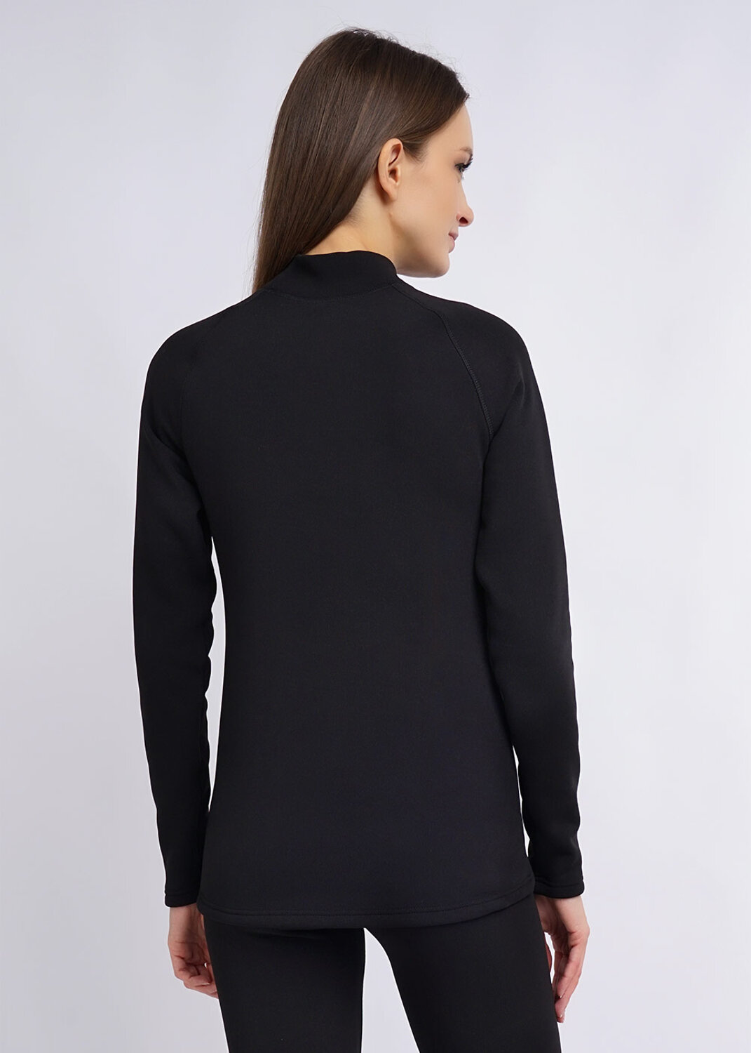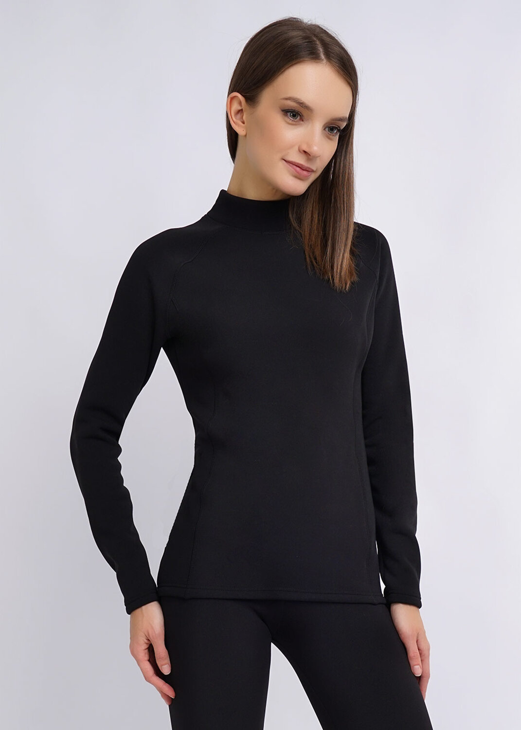 Джемпер из мягкого трикотажного полотна с начесом. Воротник-стойка придает изделию максимальную термоизоляцию, а длинный рукав-реглан - идеальную посадку, позволяющие заниматься любыми зимними видами спорта.