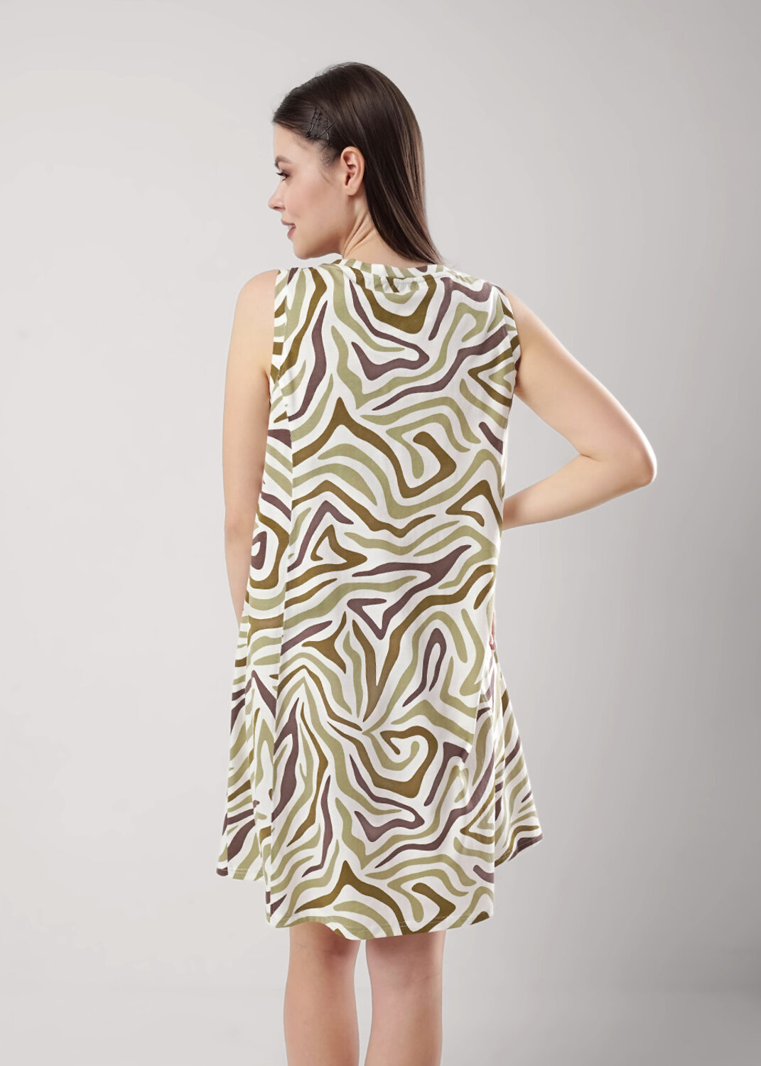 Сорочка ночная для дома и отдыха из хлопкового трикотажного полотна, А-силуэта, без рукавов. По горловине и пройме обтачка. Рельефы по переду. На детали переда принт вспенка, внизу нашивка кокос.