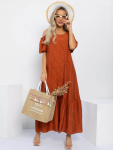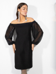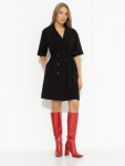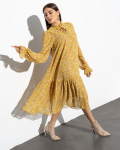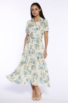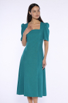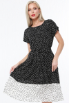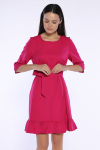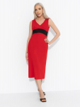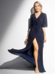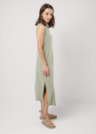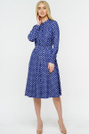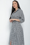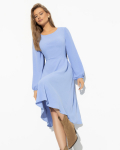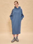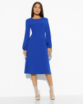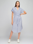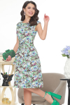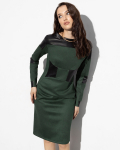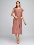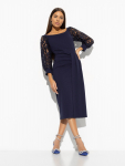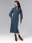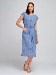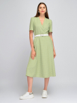 Платье из поливискозного трикотажного полотна джерси, длиной миди.Округлая горловина с внутренней обтачкой. Втачной рукав 7/8. Спереди вставка - полотно полоса по диагонали. По спинке средний шов с потайной молнией. Съёмный пояс из стропы с полукольцами.