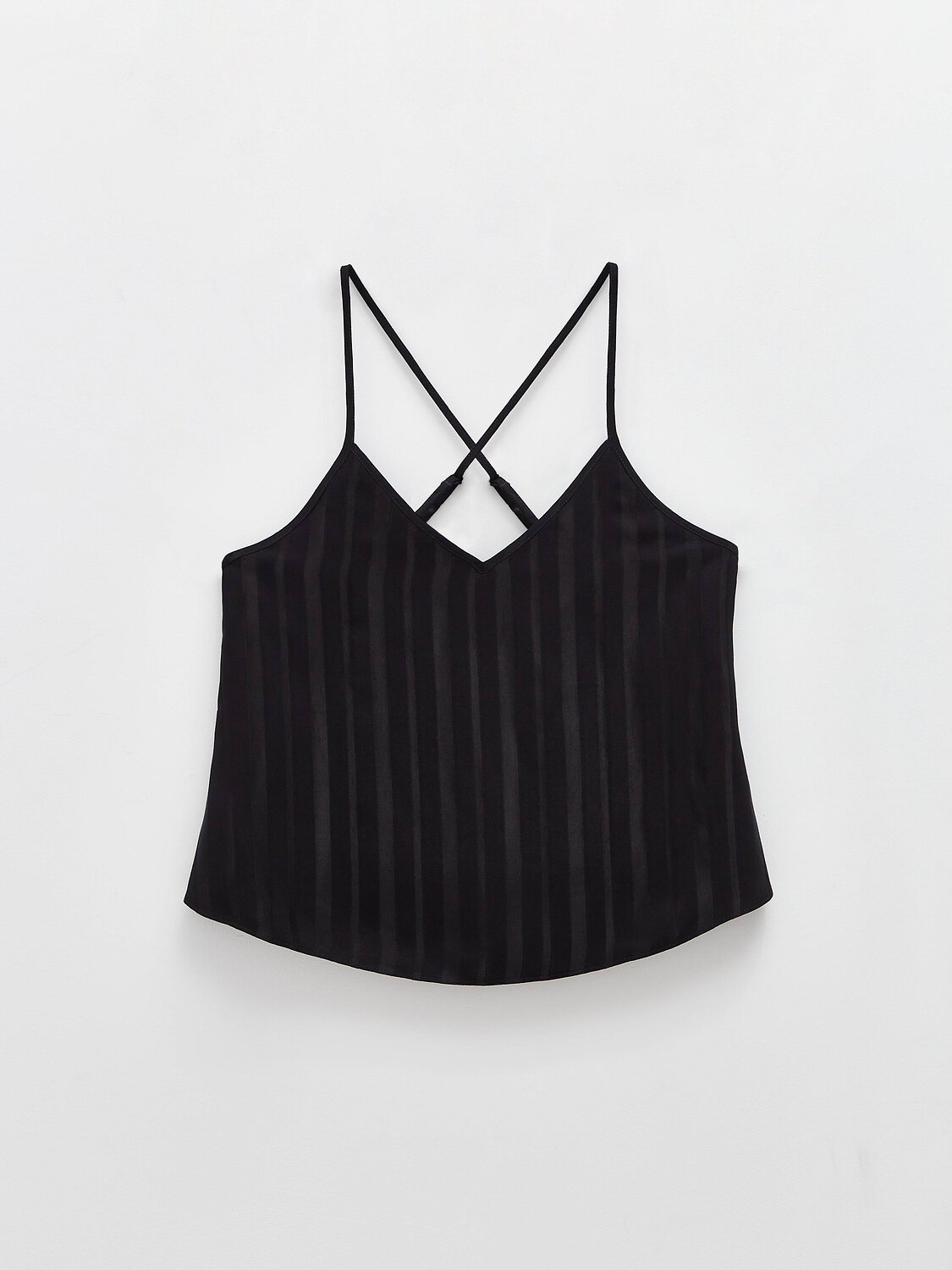 Топ умеренно свободного кроя с атласными полосами – эффектный, соблазнительный и при этом комфортный вариант для домашнего и бельевого гардероба.