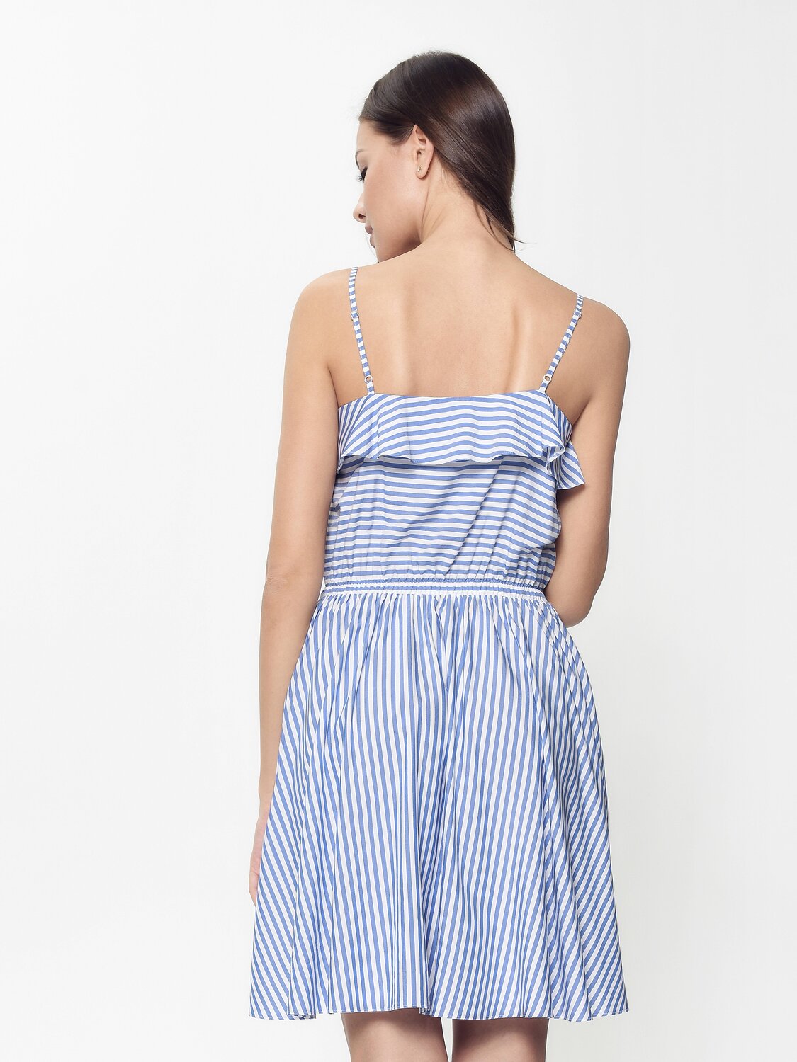 Ультрамодное платье на тонких регулируемых бретелях с широкими рюшами по переду и спинке - must have в летнем гардеробе современной девушки.