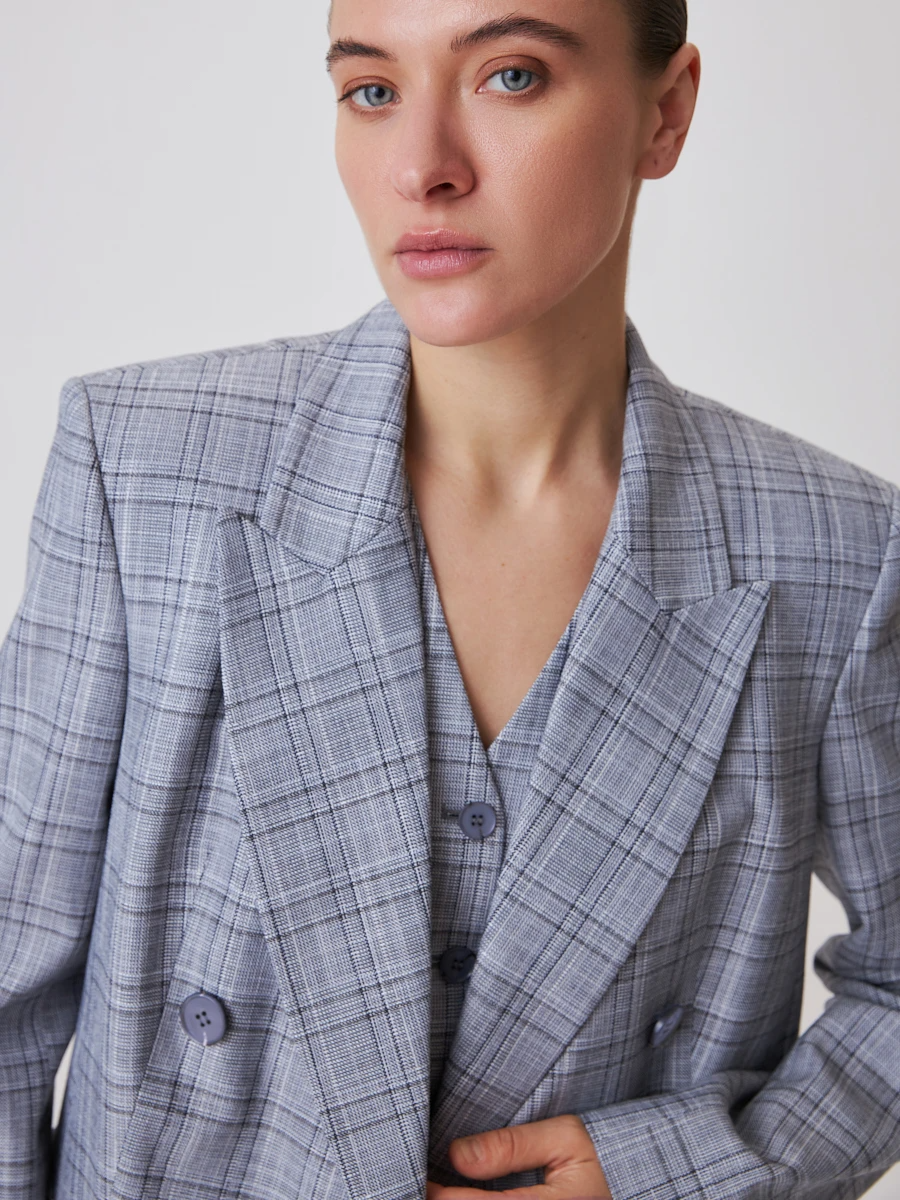 Oversize жакет в клетку Серый 40.963.0217.105.1