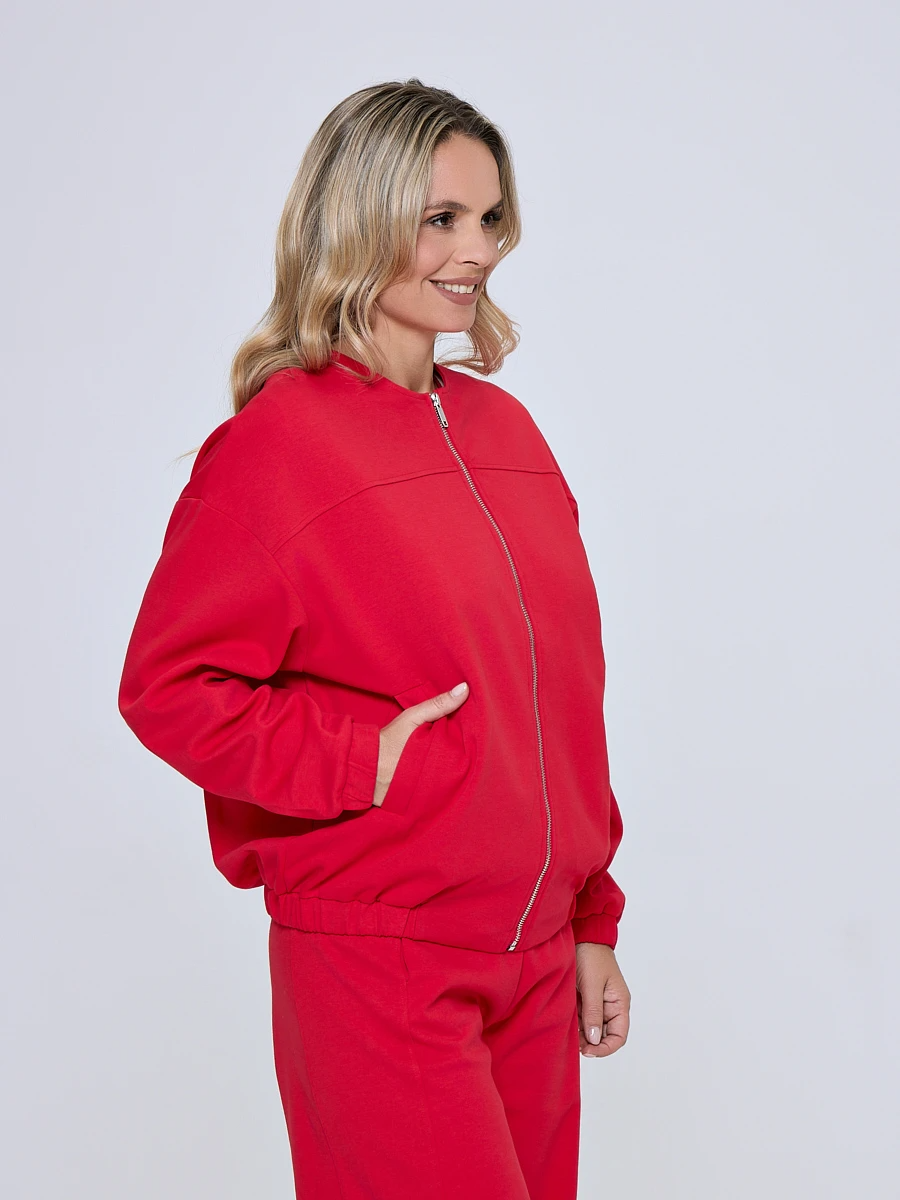 Женский бомбер в красном цвете – универсальный элемент гардероба, который сочетает в себе комфорт и стиль. Мягкая трикотажная ткань обеспечивает удобство и свободу движений, а эластичные вставки по низу изделия и на манжетах создают аккуратный силуэт и добавляют практичности. Застёжка-молния по всей длине делает модель функциональной и удобной в носке, позволяя регулировать образ в зависимости от ситуации. Боковые карманы подчеркивают повседневный характер вещи и делают её максимально удобной.