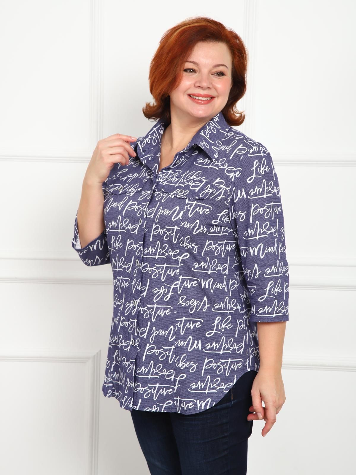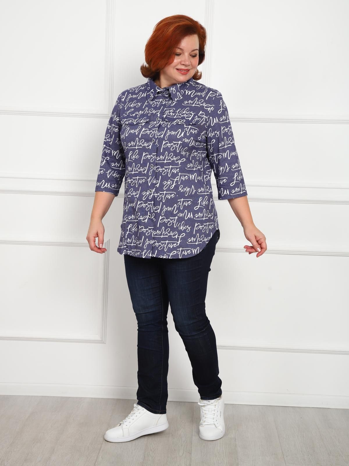 Универсальная хлопковая рубашка с рукавом 3/4. Свободный крой и рельефы на груди обеспечивают хорошую посадку. Закругленный низ изделия закрывает бедра.
