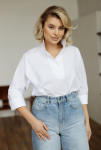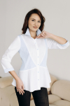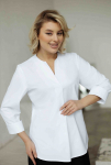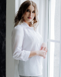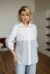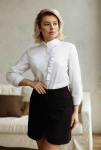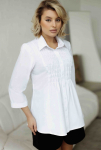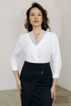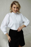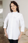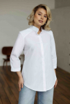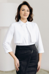 Эту блузку можно назвать моделью вне времени: скромная и в то же время элегантная, она поистине незаменима в классическом женском гардеробе. Блузка отличается простым, слегка приталенным кроем, рукавом 3/4 на манжетах, классическим воротником.