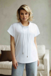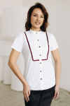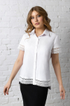 Нежная блузка с кружевной отделкой по низу переда и рукава. Удлиненная спинка довершает современный образ