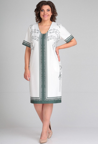 Платье женское полуприлегающего силуэта расклешённое книзу. Перед с отрезным лифом: верхняя часть с рельефами от плеча до подреза, внутренняя часть с рельефами и на бретелях. Нижняя часть переда с застроченной встречной складкой. Спинка с талиевыми вытачками, между которыми обработана кулиса с резинками. Рукав втачной одношовный по низу с обтачкой и разрезом. Горловина округлой формы с расходящимся V-образым вырезом.