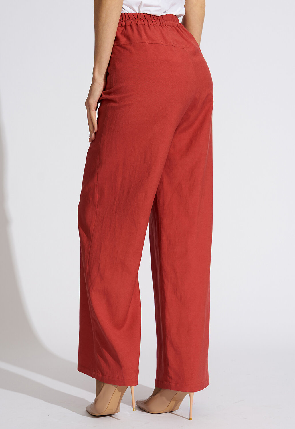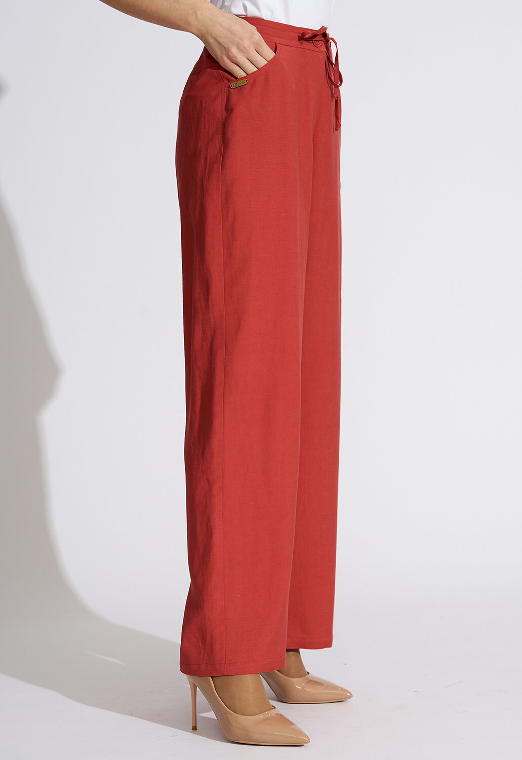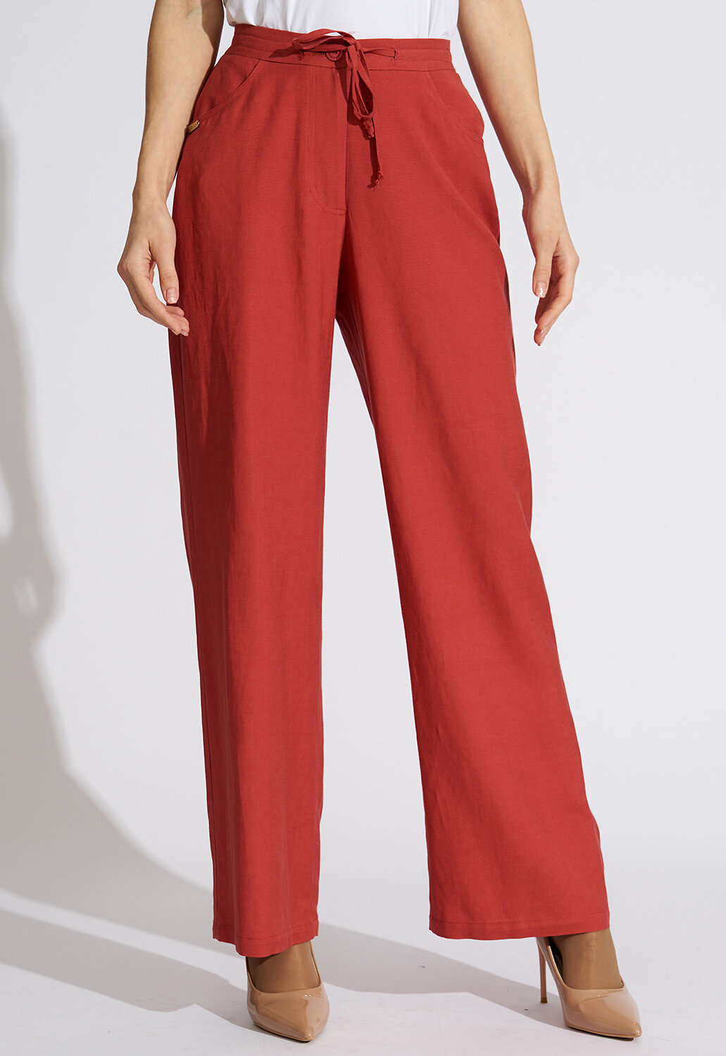 Современные, модные базовые брюки с хорошей посадкой прямого силуэта от российского производителя D’imma Fashion Studio из натуральной смесовой ткани – основа женского «умного» гардероба и олицетворение привлекательности, элегантности и уверенности. Универсальные брюки выполнены из мягкой смесовой ткани из вискозы и льна, что придает силуэту легкость, воздушность, подчеркивая женственность и романтичность. Простота линий кроя сбалансирована яркостью струящейся ткани. Модель с трендовым нововведением этого сезона – широкими брюками. Для практичности и удобства брюки сзади на резинке. По переду пояс на кулиске, что позволяет формировать ширину по талии на свое усмотрение. Втачные «джинсовые» карманы дополняют образ и создают комфорт. Яркие, базовые брюки будут уместно смотреться и днем, и вечером, и на приятном мероприятии. Они обеспечат свободу движения и мысли, и будут изумительно смотреться не только на моделях из дизайнерских коллекций, но и на девушках с аппетитными формами. Есть большие размеры. Прекрасно будут сочетаться как с модельными туфельками на каблучке, босоножками, так и с кедами или кроссовками, создавая новый свежий современный образ. Выбрав актуальные базовые брюки D’imma, можно быть уверенной в том, что лук соответствует последним тенденциям моды. Прямой силуэт и ничего лишнего, что может помешать Вам любоваться окружающим миром по дороге на работу, на прогулке в парке или в отпуске на прогулке по вечерней набережной. Не взирая на причуды природы, в такой модели Вы будете выглядеть женственно и неповторимо. Можно дополнять яркими аксессуарами и менять образ под настроение. Разнообразные версии – ключ к созданию линейки модных, индивидуальных луков. Вы убедитесь, что это очень выгодная покупка, которая не будет пылиться в шкафу!