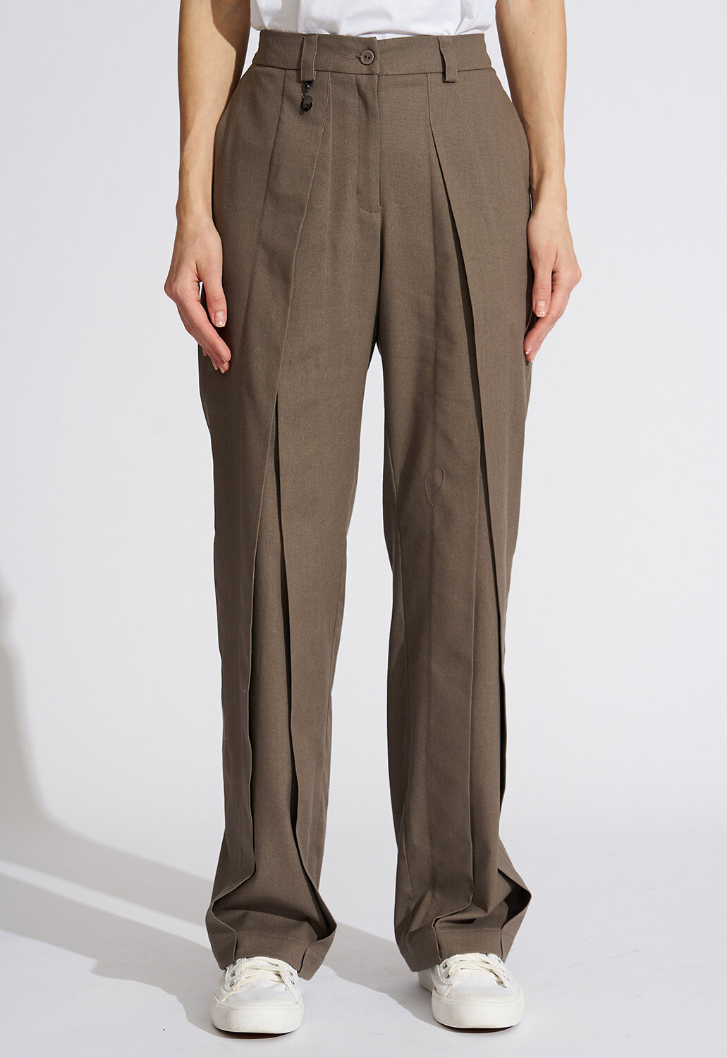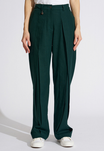 Модные дизайнерские брюки выполнены из смесовой ткани из хлопка, льна и вискозы, что придает силуэту стройность и завершенность, подчеркивая женственность и романтичность. Простота линий кроя сбалансирована яркостью дизайнерской мысли. Прямая модель брюк по переду оформлена встречными складками, встречающимся на талии и визуально удлиняющими женские ножки. Такой фасон универсален и подходит всем девушкам, как высоким, так и низким, худеньким и с фигуркой плюс-сайз. Втачные вертикальные карманы в боковых швах дополняют образ и создают комфорт. Классическая застежка на молнию и пуговицу дополнена удобной резинкой по спинке - это отличный выбор для тех, кто не любит жесткого пояса и хочет, чтобы брюки сели на фигуру максимально комфортно. Прекрасно будут сочетаться как с модельными туфельками на каблучке, босоножками, так и с кедами или кроссовками, создавая новый свежий современный образ. Архитектурность этого изделия и его многоликость дают невероятные возможности для реализации творческой мысли и будут изумительно смотреться не только на моделях из дизайнерских коллекций, но и на девушках с аппетитными формами. Есть большие размеры. Выбрав брюки от D’imma, можно быть уверенной в том, что лук соответствует последним тенденциям моды. Прямой силуэт и ничего лишнего, что может помешать Вам любоваться окружающим миром по дороге на работу, на прогулке в парке или по городу. Не взирая на причуды природы, в такой модели Вы будете выглядеть женственно и неповторимо. Брюки являются базовой деталью в женском гардеробе и легко выручат современную леди в ситуации из серии «когда нечего надеть». Можно дополнять яркими аксессуарами и менять образ под настроение. Разнообразные версии – ключ к созданию линейки модных, индивидуальных луков. Вы убедитесь, что это очень выгодная покупка, которая не будет пылиться в шкафу!