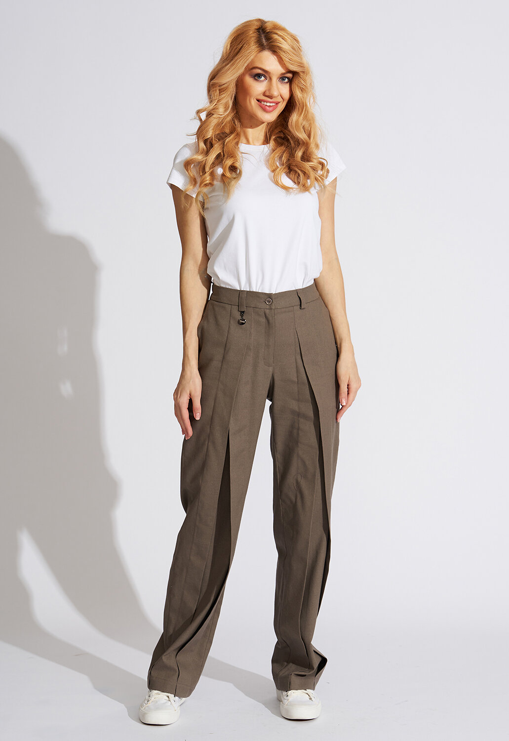 Современные, модные стильные брюки прямого силуэта с хорошей посадкой от российского производителя D’imma Fashion Studio из натуральной смесовой ткани – основа женского «умного» гардероба и олицетворение привлекательности, элегантности и уверенности.