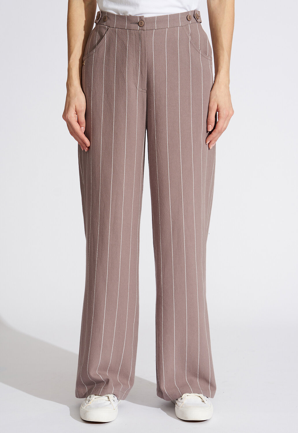Модные дизайнерские брюки женские летние выполнены из мягкой 100% натуральной смесовой ткани из вискозы и льна в пропорции 70/30, что придает силуэту стройность и завершенность, подчеркивая женственность и романтичность. Простота линий кроя сбалансирована яркостью дизайнерской мысли. Модель с трендовым нововведением этого сезона – широкими брюками. Классическая застежка на молнию и пуговицу дополнена удобной резинкой по спинке - это отличный выбор для тех, кто не любит жесткого пояса и хочет, чтобы летние брюки женские сели на фигуру максимально комфортно. Втачные «джинсовые» карманы дополняют образ и создают комфорт. Такой фасон универсален и подходит всем девушкам, как высоким, так и низким, худеньким и с фигуркой плюс-сайз . Прекрасно будут сочетаться как с модельными туфельками на каблучке, босоножками, так и с кедами или кроссовками, создавая новый свежий современный образ. Архитектурность этого изделия и его многоликость дают невероятные возможности для реализации творческой мысли и будут изумительно смотреться не только на моделях из дизайнерских коллекций, но и на девушках с аппетитными формами. Есть большие размеры. Выбрав брюки от D’imma, можно быть уверенной в том, что лук соответствует последним тенденциям моды. Прямой силуэт и ничего лишнего, что может помешать Вам любоваться окружающим миром по дороге на работу, на прогулке в парке или по городу. Не взирая на причуды природы, в такой модели Вы будете выглядеть женственно и неповторимо. Брюки женские классические являются базовой деталью в женском гардеробе и легко выручат современную леди в ситуации из серии «когда нечего надеть». Можно дополнять яркими аксессуарами и менять образ под настроение. Разнообразные версии – ключ к созданию линейки модных, индивидуальных луков. Вы убедитесь, что это очень выгодная покупка, которая не будет пылиться в шкафу!