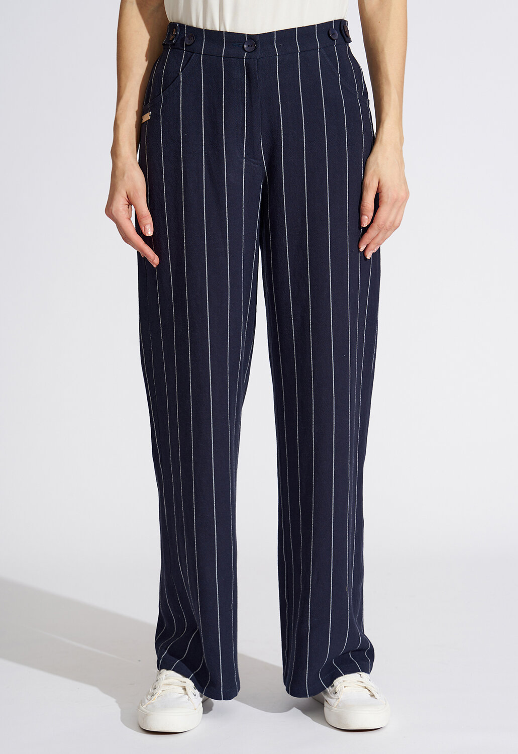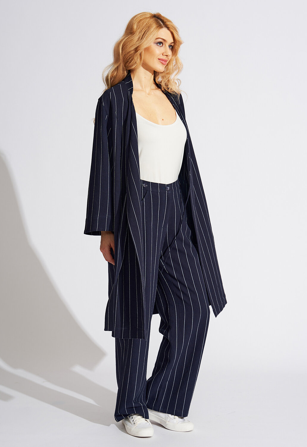 Модные дизайнерские брюки женские летние выполнены из мягкой 100% натуральной смесовой ткани из вискозы и льна в пропорции 70/30, что придает силуэту стройность и завершенность, подчеркивая женственность и романтичность. Простота линий кроя сбалансирована яркостью дизайнерской мысли. Модель с трендовым нововведением этого сезона – широкими брюками. Классическая застежка на молнию и пуговицу дополнена удобной резинкой по спинке - это отличный выбор для тех, кто не любит жесткого пояса и хочет, чтобы летние брюки женские сели на фигуру максимально комфортно. Втачные «джинсовые» карманы дополняют образ и создают комфорт. Такой фасон универсален и подходит всем девушкам, как высоким, так и низким, худеньким и с фигуркой плюс-сайз . Прекрасно будут сочетаться как с модельными туфельками на каблучке, босоножками, так и с кедами или кроссовками, создавая новый свежий современный образ. Архитектурность этого изделия и его многоликость дают невероятные возможности для реализации творческой мысли и будут изумительно смотреться не только на моделях из дизайнерских коллекций, но и на девушках с аппетитными формами. Есть большие размеры. Выбрав брюки от D’imma, можно быть уверенной в том, что лук соответствует последним тенденциям моды. Прямой силуэт и ничего лишнего, что может помешать Вам любоваться окружающим миром по дороге на работу, на прогулке в парке или по городу. Не взирая на причуды природы, в такой модели Вы будете выглядеть женственно и неповторимо. Брюки женские классические являются базовой деталью в женском гардеробе и легко выручат современную леди в ситуации из серии «когда нечего надеть». Можно дополнять яркими аксессуарами и менять образ под настроение. Разнообразные версии – ключ к созданию линейки модных, индивидуальных луков. Вы убедитесь, что это очень выгодная покупка, которая не будет пылиться в шкафу!