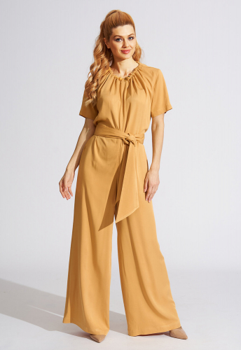 Современный, модный комбинезон с хорошей посадкой прямого силуэта от российского производителя D’imma Fashion Studio из натуральной ткани – основа женского «умного» гардероба и олицетворение привлекательности, элегантности и уверенности. Универсальный комбинезон выполнено из мягкой ткани из 100% вискозы, что придает силуэту легкость, воздушность, подчеркивая женственность и романтичность. Простота линий кроя сбалансирована яркостью струящейся ткани. Модель с трендовым нововведением этого сезона – широкими брюками. Для практичности и удобства комбинезон застегивается на молнию. Чуть расстегнув молнию, можно оформить V-образный вырез, подчеркнуть изящность ключиц и визуально удлинить шею. Акцент на шее сформирован модной сборкой по вырезу горловины. Втачные карманы в боковых швах и пояс дополняют образ и создают комфорт. Есть большие размеры. Пояс в комплекте. Яркий, акцентный комбинезон будет уместно смотреться и днем, и вечером, и на приятном мероприятии. Он обеспечит свободу движения и мысли, и будет изумительно смотреться не только на моделях из дизайнерских коллекций, но и на девушках с аппетитными формами. Прекрасно будет сочетаться как с модельными туфельками на каблучке, босоножками, так и с кедами или кроссовками, создавая новый свежий современный образ. Выбрав актуальный комбинезон D’imma, можно быть уверенной в том, что лук соответствует последним тенденциям моды. Прямой силуэт и ничего лишнего, что может помешать Вам любоваться окружающим миром по дороге на работу, на прогулке в парке или в отпуске на прогулке по вечерней набережной. Не взирая на причуды природы, в такой модели Вы будете выглядеть женственно и неповторимо. Можно дополнять яркими аксессуарами и менять образ под настроение. Разнообразные версии – ключ к созданию линейки модных, индивидуальных луков. Вы убедитесь, что это очень выгодная покупка, которая не будет пылиться в шкафу!