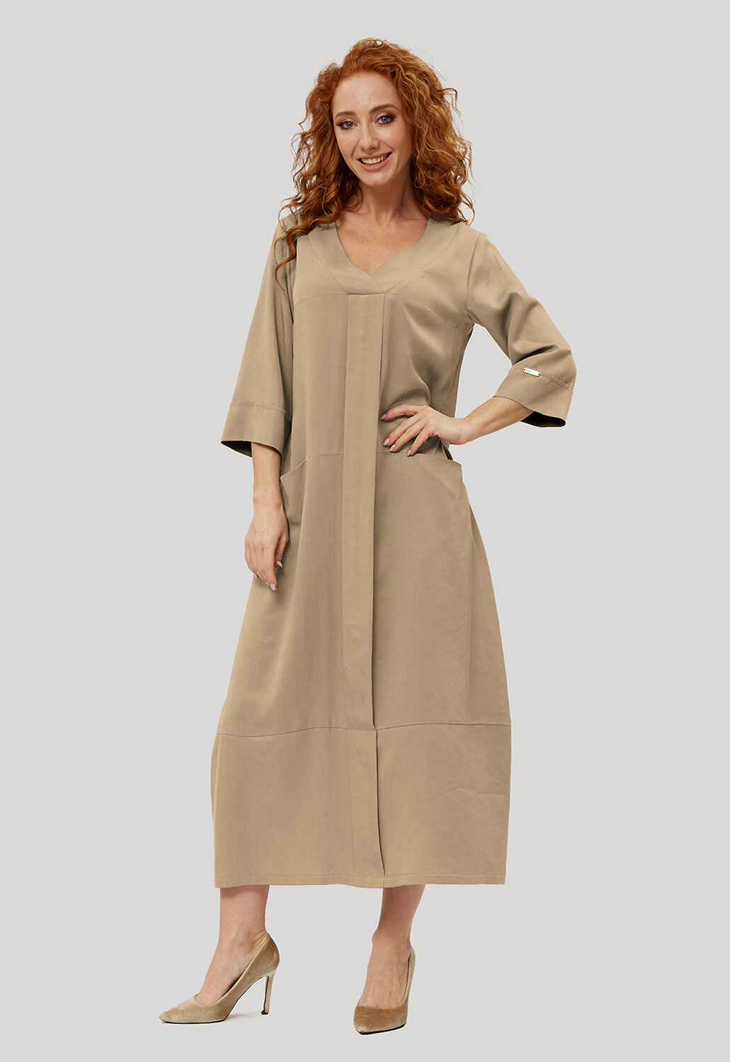 Стильное, универсальное платье в минималистическом кэжуал - стиле комфортной длины от российского производителя D’imma Fashion Studio из натуральной ткани - олицетворение женственности, привлекательности и уверенности. Модель на кокетке с актуальным V-образным вырезом, визуально удлиняющим шею. Вырез обработан широкой обтачкой, переходящей в бантовую складку по центру переда. Втачной рукав с цельнокроеной манжетой делает его интересным и модным. По переду горизонтальный рез ниже линии талии с цельнокроеными карманами придаст модели удобства и стиля. Данное платье свободного силуэта будет изумительно смотреться не только на моделях из дизайнерских коллекций, но и на корпулентных девушках. Можно дополнять яркими аксессуарами и менять образ под настроение. Модель создана для тех, кто любит быть индивидуальным и неповторимым.