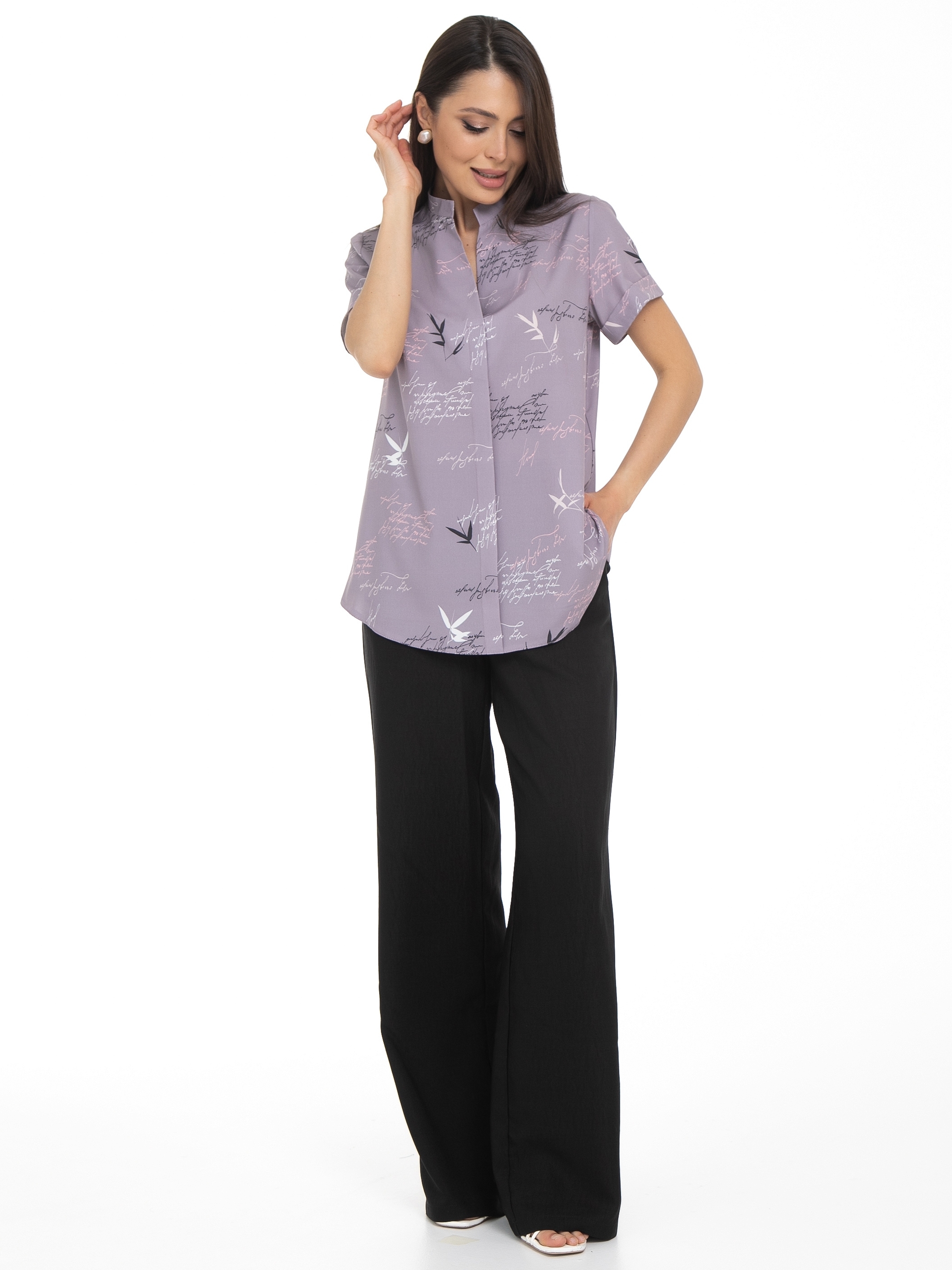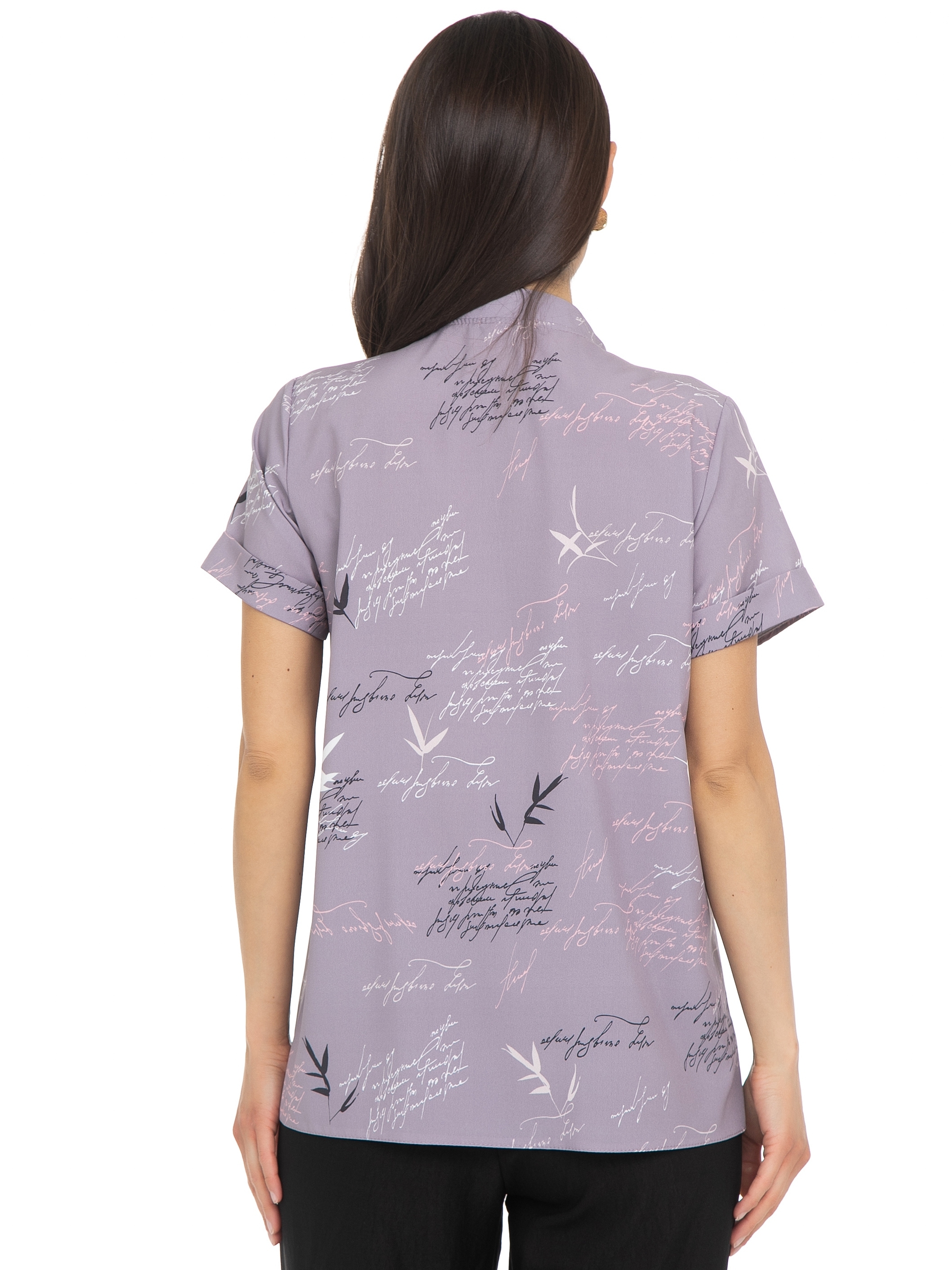 Блузка  продуманного и универсального фасона, идеально подходящего под любой низ. Блуза летних расцветок, идеально впишется в любой гардероб: для создания , повседневного или праздничного. Можно носить как с классическими брюками и юбками, так и с джинсами или под сарафан. Прекрасно смотрится как в заправленном состоянии, так и на выпуск. Благодаря легкой ткани блузка обеспечивает идеальный  комфорт в летний зной, не мнется и обладает износостойкостью, Ткань легкая и не просвечивает. Воротник классический на стойке, рукав короткий   с отворотом.