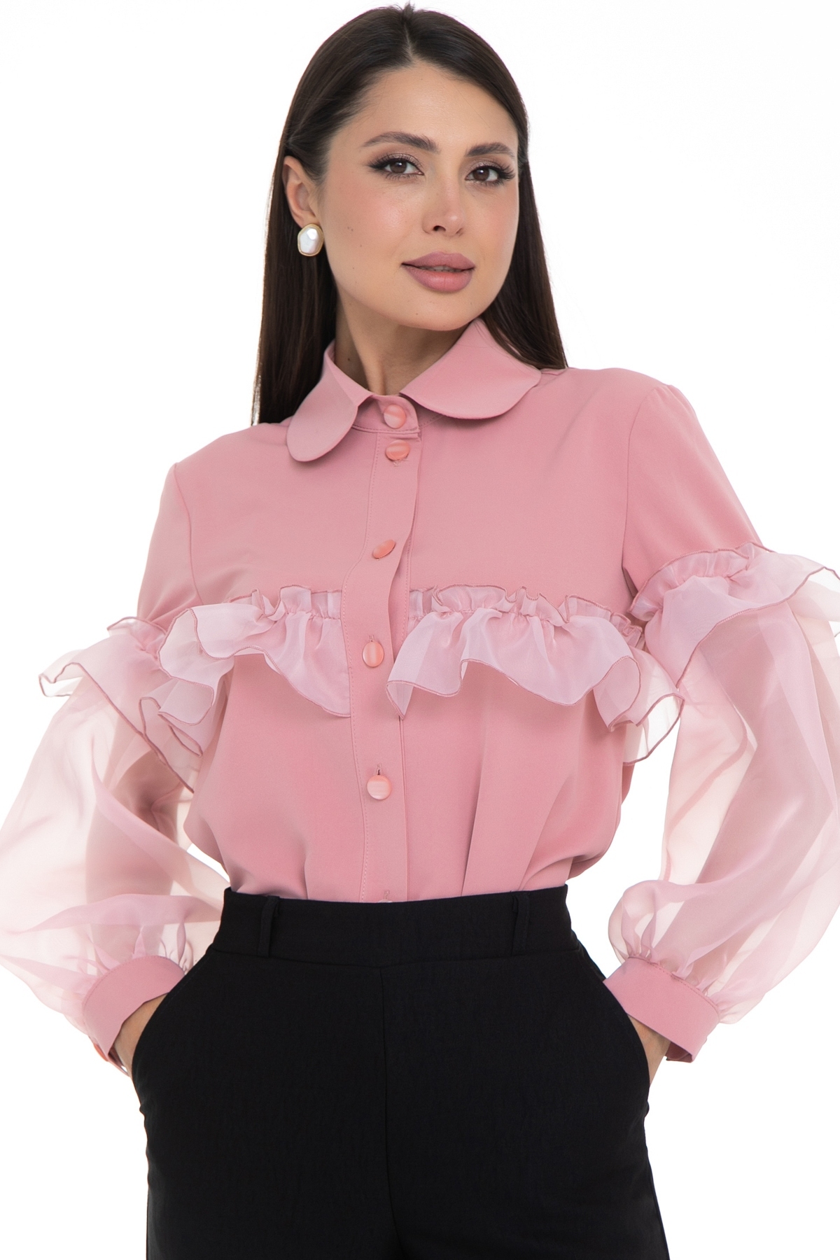 Блузка – это универсальный элемент гардероба, который может быть как строгим и деловым, так и легким и романтичным. А если добавить к ней немного волшебства, например, в виде рукавов, украшенных органзой, то она мгновенно превращается в нарядную и элегантную вещь, способную украсить любой образ.