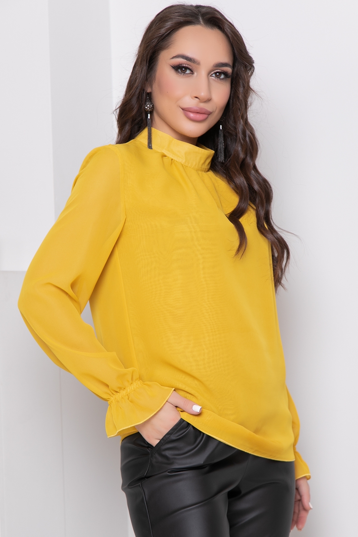 Восхитительная блузка из воздушного шифона с объемными широкими рукавами выглядит изысканно и стильно. Блуза прямого свободного фасона подойдет как для создания вечернего образа, так и для офисного стиля, ее легко сочетать с брюками, джинсами или юбкой, надевать под пиджак или жакет. Перед и спинка из двух слоев ткани. Воротник стойка сзади переходит в завязки с длинными концами, из которых получается великолепный бант. Можно сделать свободный узел и оставить ленты, либо перекинуть их вперед, создав тем самым новый образ. Придумывайте, творите и восхищайте!