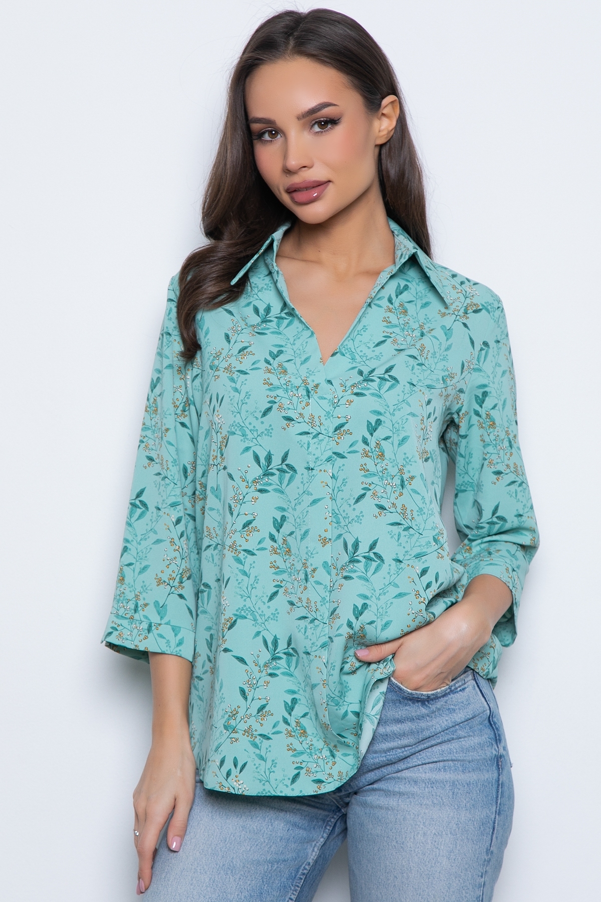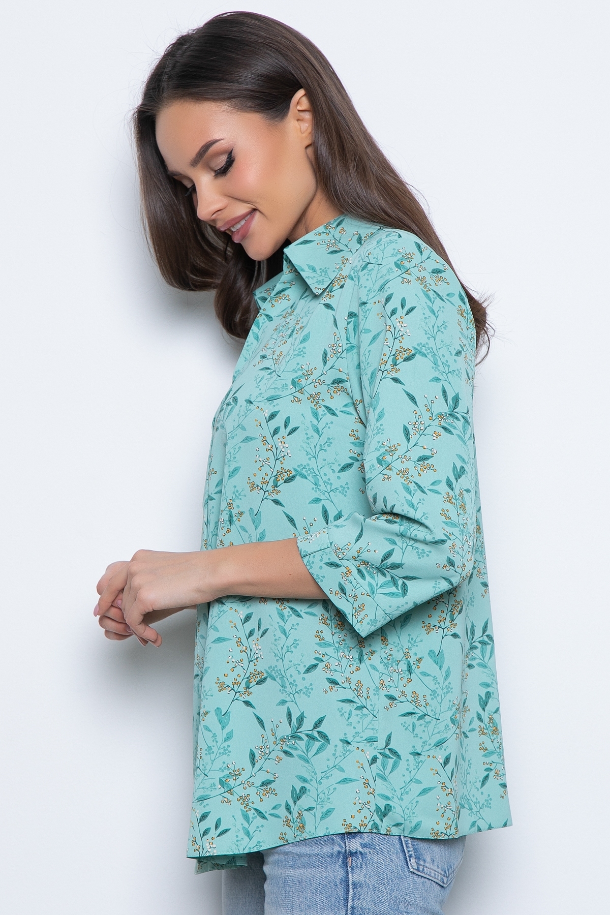 Каждая женщина мечтает о наличии идеальной блузки, которая подчеркнет ее современный стиль и придаст образу женственности и элегантности. Расклешенная блузка от Diolche-  идеальное решение! Блузка  продуманного и универсального фасона, идеально подходящего под любой низ. Легкая, стильная блузка является классическим элементом гардероба и подходит для любого возраста и стиля! Можно носить как с классическими брюками и юбками, так и с джинсами или под сарафан. Прекрасно смотрится как в заправленном состоянии, так и на выпуск. Благодаря ткани блузка практически не мнется, обладает износостойкостью, обеспечивает идеальный комфорт. Ткань легкая и не просвечивает.Воротник классический на стойке, рукав 3/4  с манжетом.