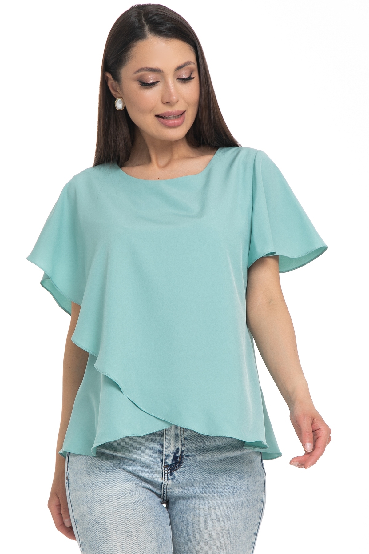 Бестселлер! Легкая блузка Diolche - идеальный выбор для создания стильного и запоминающегося образа. Рукав крылышко и ассиметричный крой придают блузке изысканность и неповторимость. Благодаря своему универсальному дизайну и качеству исполнения, эта блузка-туника с коротким рукавом станет вашим надежным помощником в создании идеального образа и скроет все недостатки фигуры.  Эта блуза уместна везде - в офисе, на прогулке или празднике. Можно носить как с классическими брюками и юбками, так и с джинсами. Прекрасно смотрится как в заправленном состоянии, так и на выпуск.