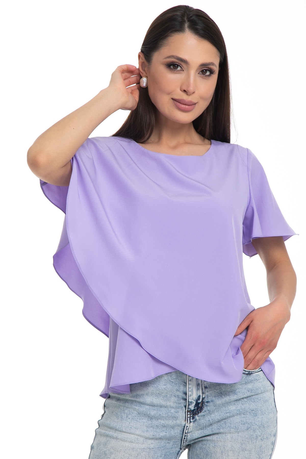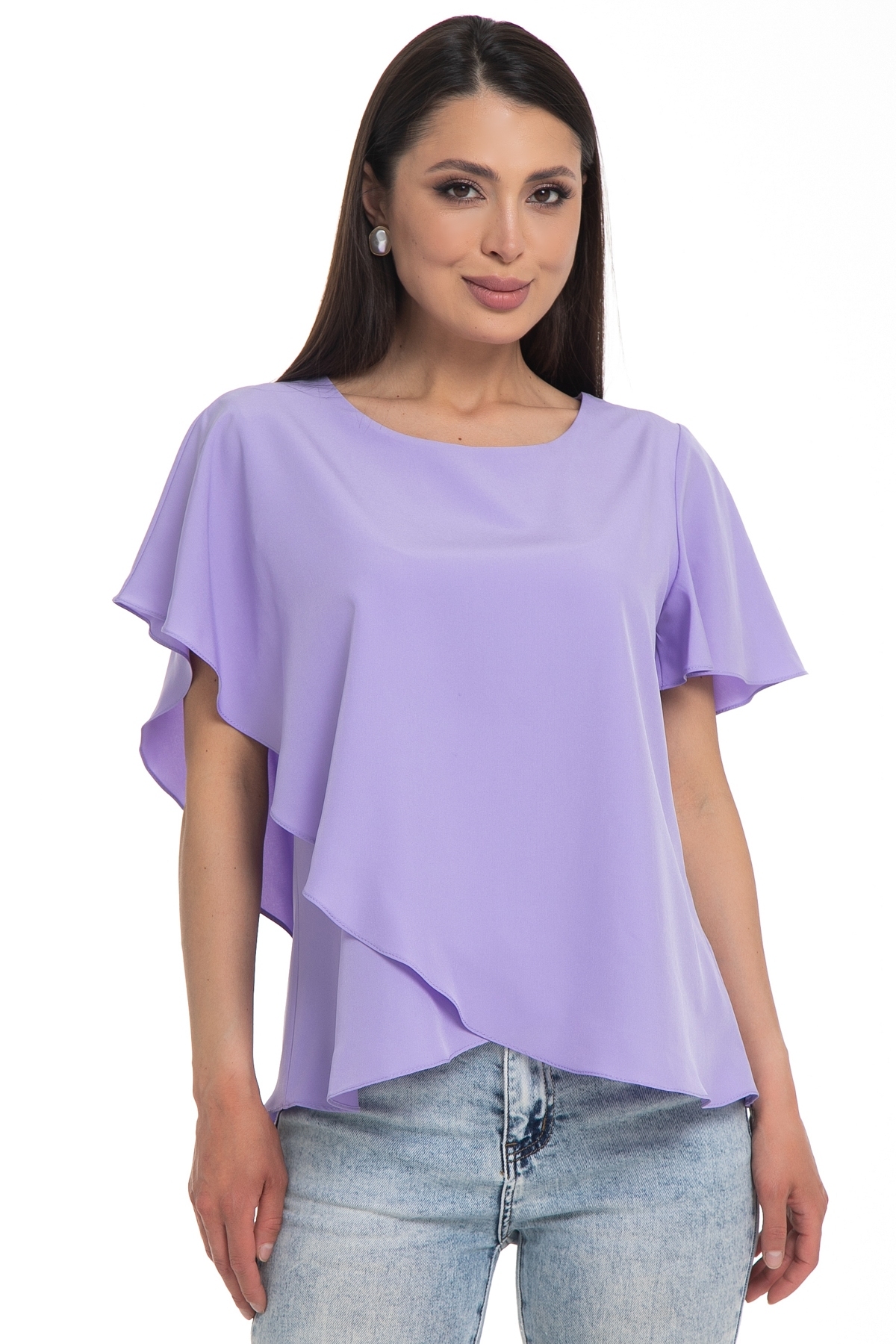 Бестселлер! Легкая блузка Diolche - идеальный выбор для создания стильного и запоминающегося образа. Рукав крылышко и ассиметричный крой придают блузке изысканность и неповторимость. Благодаря своему универсальному дизайну и качеству исполнения, эта блузка-туника с коротким рукавом станет вашим надежным помощником в создании идеального образа и скроет все недостатки фигуры.  Эта блуза уместна везде - в офисе, на прогулке или празднике. Можно носить как с классическими брюками и юбками, так и с джинсами. Прекрасно смотрится как в заправленном состоянии, так и на выпуск.