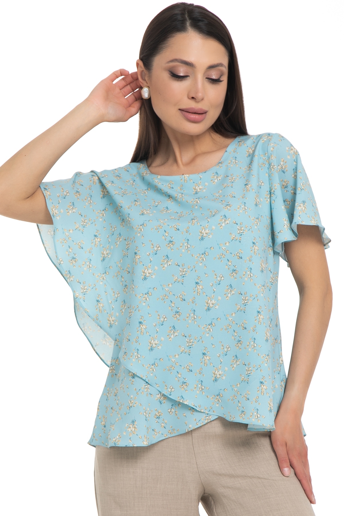Бестселлер! Легкая блузка Diolche - идеальный выбор для создания стильного и запоминающегося образа. Рукав крылышко и ассиметричный крой придают блузке изысканность и неповторимость. Благодаря своему универсальному дизайну и качеству исполнения, эта блузка-туника с коротким рукавом станет вашим надежным помощником в создании идеального образа и скроет все недостатки фигуры.  Эта блуза уместна везде - в офисе, на прогулке или празднике. Можно носить как с классическими брюками и юбками, так и с джинсами. Прекрасно смотрится как в заправленном состоянии, так и на выпуск.