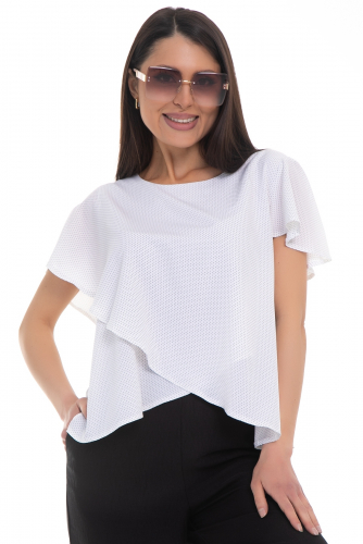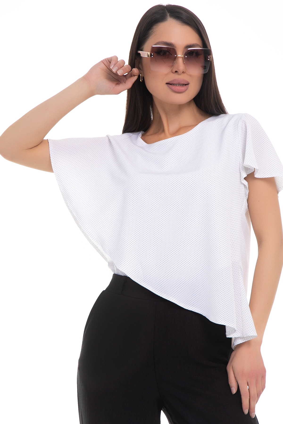 Бестселлер! Легкая блузка Diolche - идеальный выбор для создания стильного и запоминающегося образа. Рукав крылышко и ассиметричный крой придают блузке изысканность и неповторимость. Благодаря своему универсальному дизайну и качеству исполнения, эта блузка-туника с коротким рукавом станет вашим надежным помощником в создании идеального образа и скроет все недостатки фигуры.  Эта блуза уместна везде - в офисе, на прогулке или празднике. Можно носить как с классическими брюками и юбками, так и с джинсами. Прекрасно смотрится как в заправленном состоянии, так и на выпуск