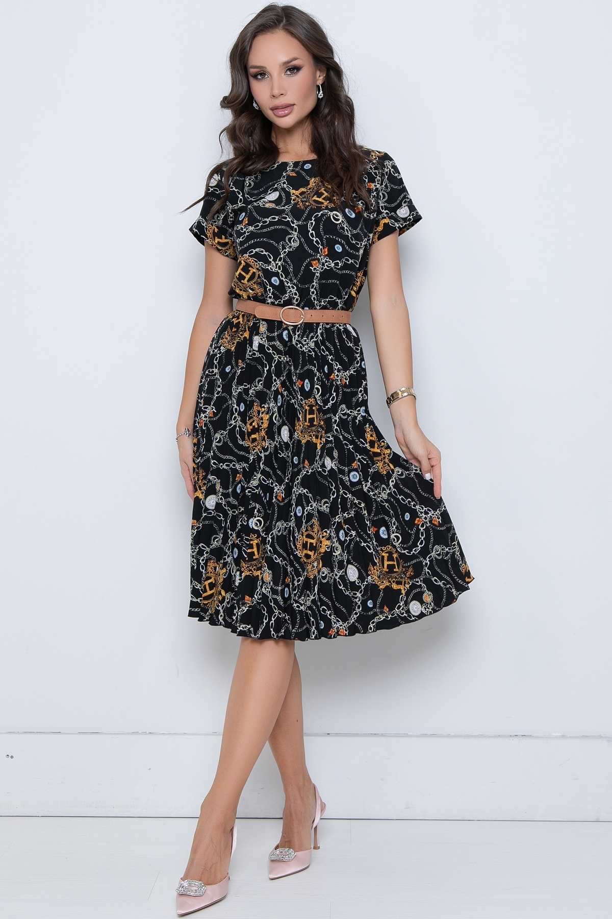Элегантное платье свободного облегания с невероятно популярной в этом сезоне юбкой гофрэ. Отлично подойдет на любую фигуру. Платье отрезное по талии и по шву собрано на резинку. Горловина обработана обтачкой. От плеча на грудь заложены по две складки с каждой стороны. Рукава втачные короткие с манжетой.
