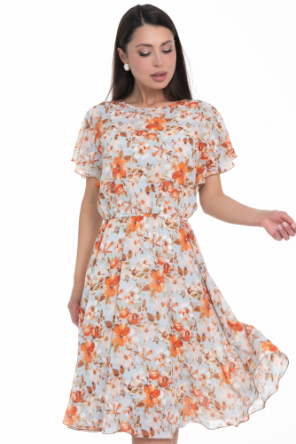 Лето- волшебное время года , когда природа оживает и каждый день приносит новые радости. И в эту пору, ничто не подчеркивает женственность и легкость так , как красивое летнее платье из воздушного шифона с рукавами крылышками и летящей юбкой полусолнце. Платье с отрезной талией на резинке. Вырез горловины обработан окантовкой из основной ткани, крылышки и низ платья обработаны специальным швом закрутка.