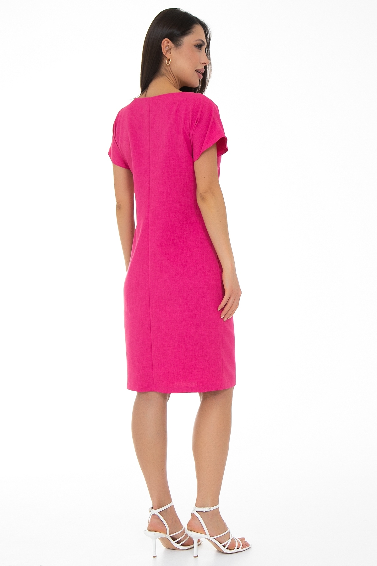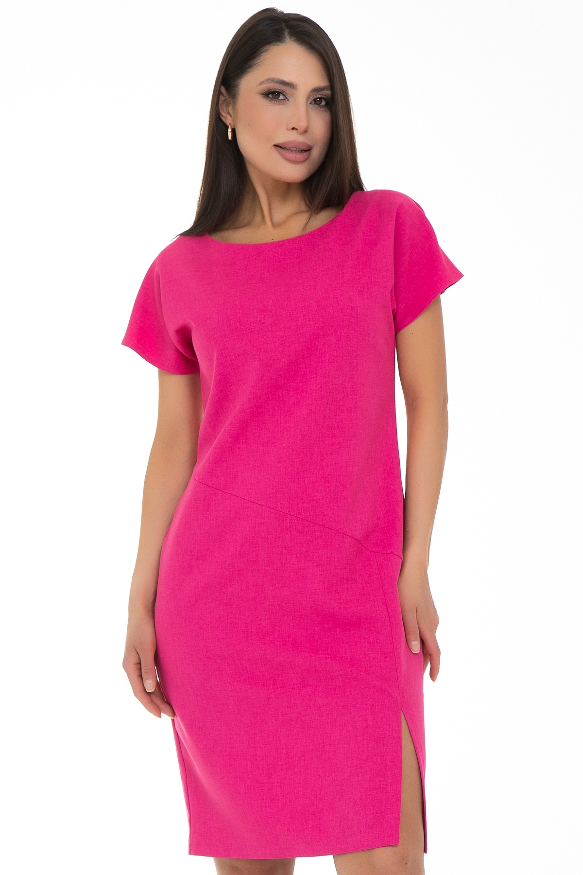 Стильное платье футляр с цельнокроеными рукавами и пикантным разрезом, полуприлегающего фасона сделает фигуру стройнее. Спинка из двух частей. Перед имеет диагональную отрезную часть и разрез.Вырез горловины обработан внутренней обтачкой. Модель выполнена из вискозной ткани "под лен".