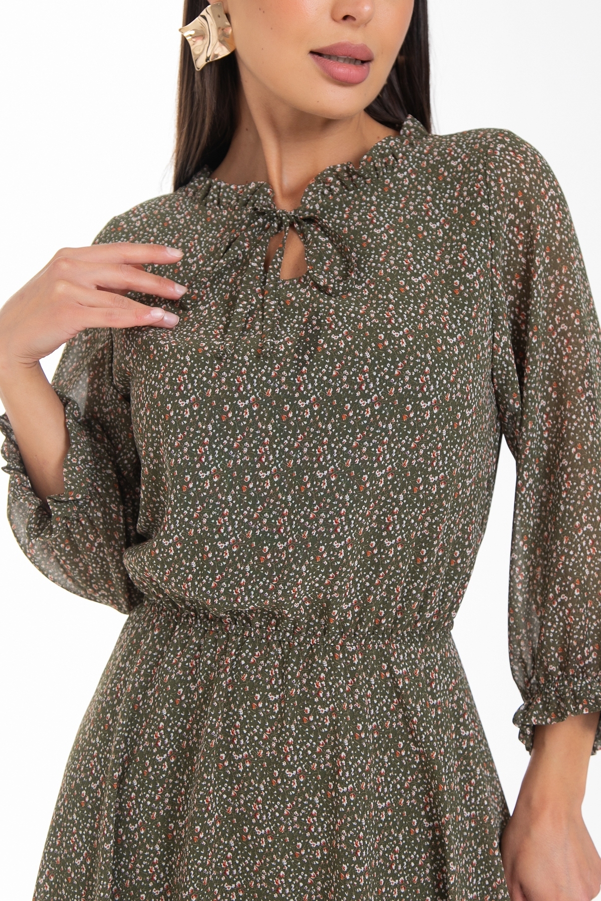 Модель выполнена из шифона и трикотажного подклада.