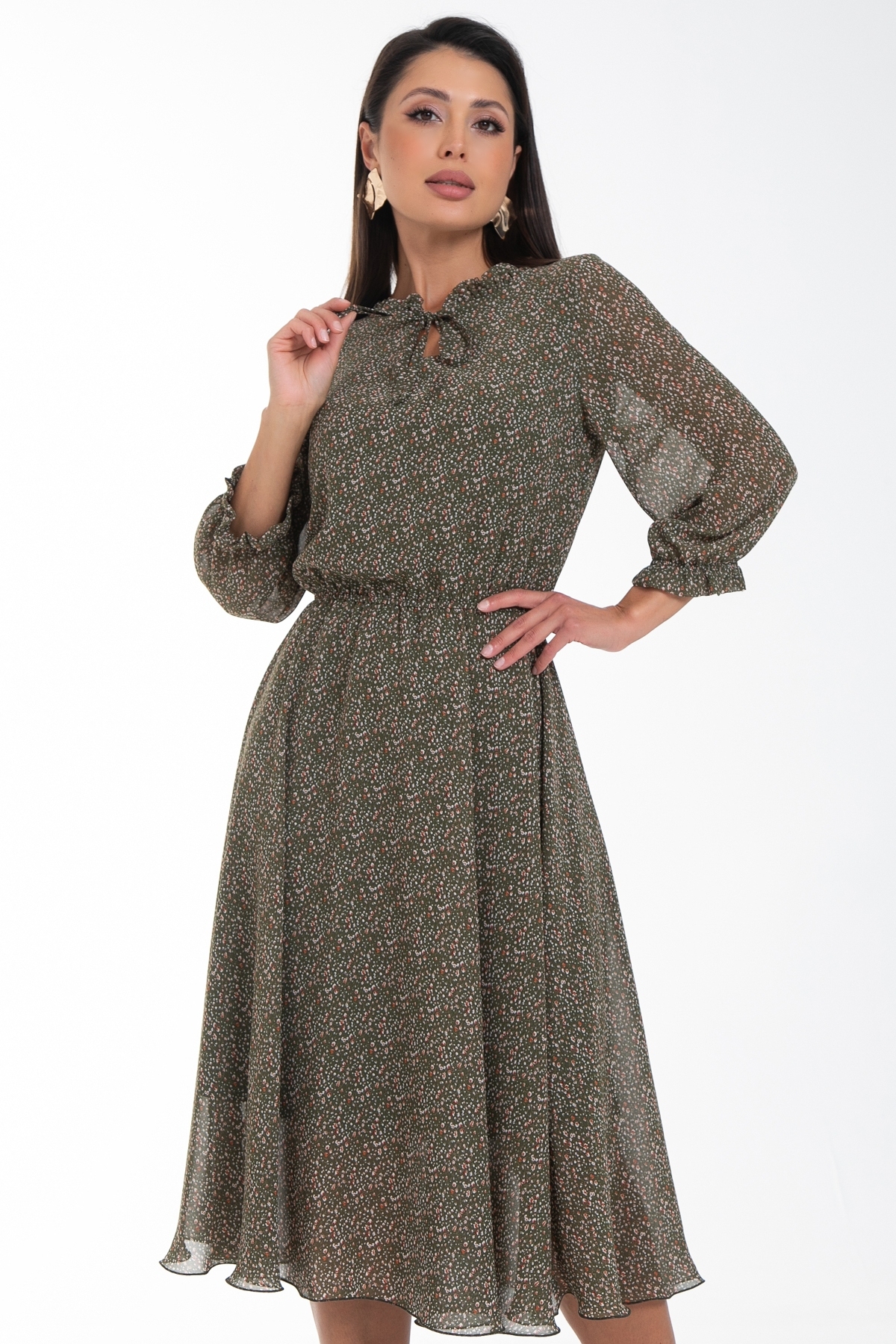 Летящее шифоновое платье подчёркивает достоинства вашей фигуры, делает Ваш образ женственным и нежным. Юбка платья полусолнце отрезная по линии талии. Полупрозрачные втачные рукава длиной 3/4 с низу подогнуты и сосборены на резинку. Платье с подкладом,притачным по горловине и пройме.По талии платье присборено на шпульную резину. Модель выполнена из шифона и трикотажного подклада.