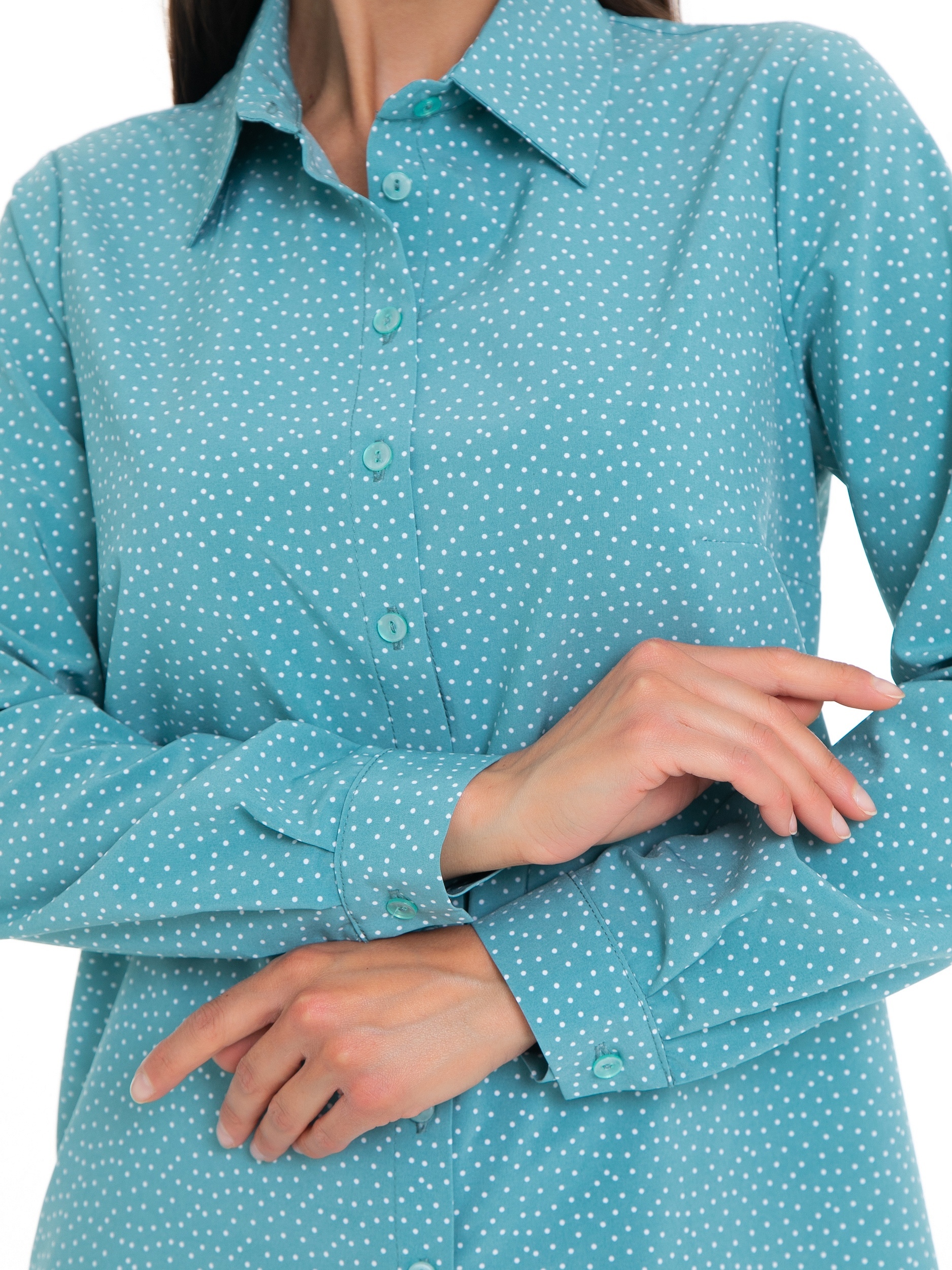 Возвращение любимой модели от Diolche. Блузка продуманного и универсального фасона, идеально подходящего под любой низ. Можно носить как с классическими брюками и юбками, так и с джинсами или под сарафан. Прекрасно смотрится как в заправленном состоянии, так и на выпуск. Классическая, немного приталенная рубашка с воротничком на стойке. Застёгивается спереди на пуговицы. Рукав втачной длинный на манжете. Спереди по бокам сделаны вытачки на грудь. По спинке сделаны вытачки в области талии. Удобная, комфортная вещь на все случаи жизни! Блузочная комфортная ткань, безупречная посадка!