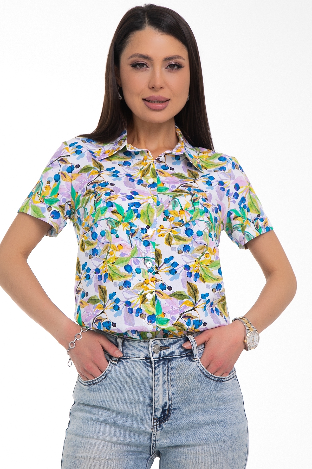 Возьмите в свой гардероб лучшую рубашку для самых запоминающихся приключений. Нежный принт превратит обычные прогулки в квест "Собрать ещё больше комплиментов". Рубашка с воротничком на стойке, спереди застёгивается на петли пуговицы. Немного приталенный силуэт. По спинке кокетка и небольшие вытачки. Рукава короткие с манжетом, который отворачивается наверх. Закругленные разрезы по бокам для удобства. Универсальная вещь, отлично сочетается с юбкой, брюками, джинсами.
