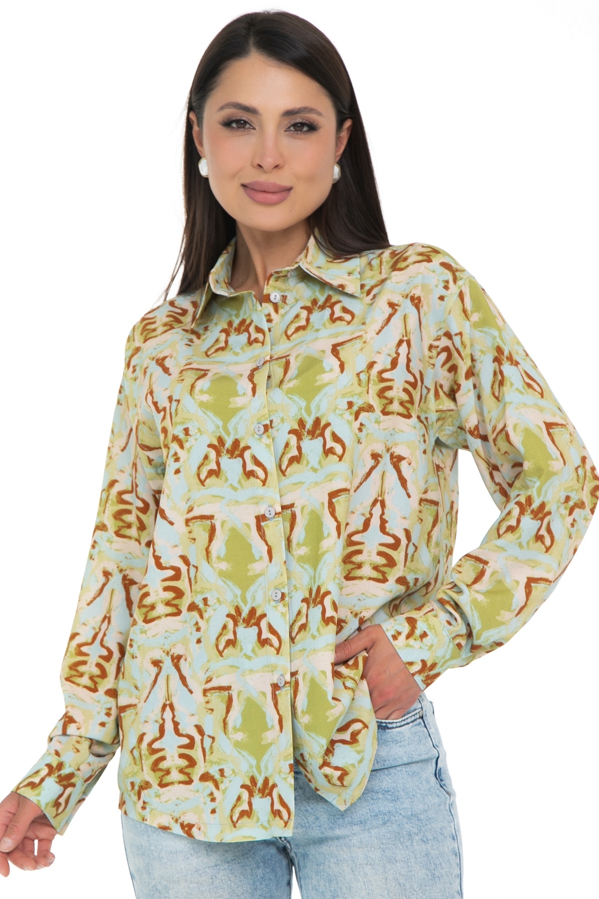 Представляем стильную рубашку оверсайз от Diolche, которая станет настоящим ХИТом Вашего гардероба! Рубашка из натуральной ткани высочайшего качества. Удобная, комфортная вещь на все случаи жизни! Рубашка с дизайнерским принтом прямого кроя со спущенным плечом, свободная посадка не сковывает движений, складка на спинке обеспечивает дополнительное удобство. Идеально подходит под любой низ. Прекрасно смотрится как в заправленном состоянии, так и на выпуск. Классическая рубашка с воротничком на стойке. Застёгивается спереди на пуговицы. Рукав втачной, длинный. По спинке сделана кокетка. Вискозная комфортная ткань, безупречная посадка!