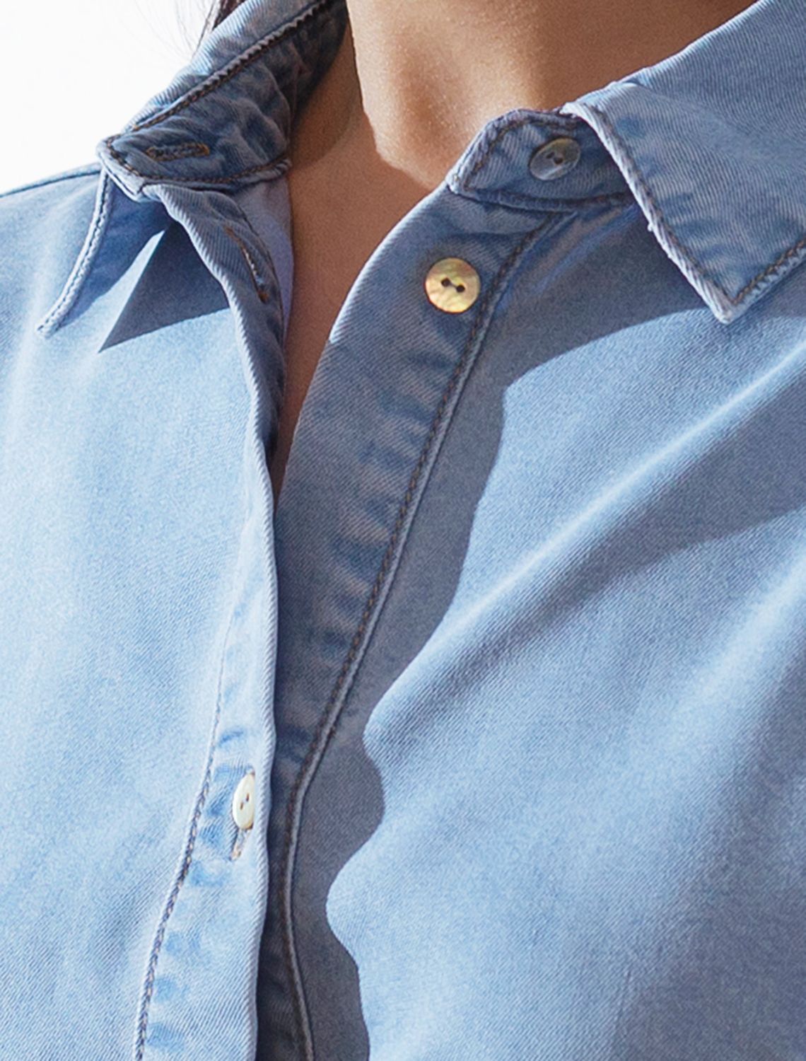 Длинное платье-рубашка с поясом и разрезами из джинсового лиоцелла D52.014 светло-голубой